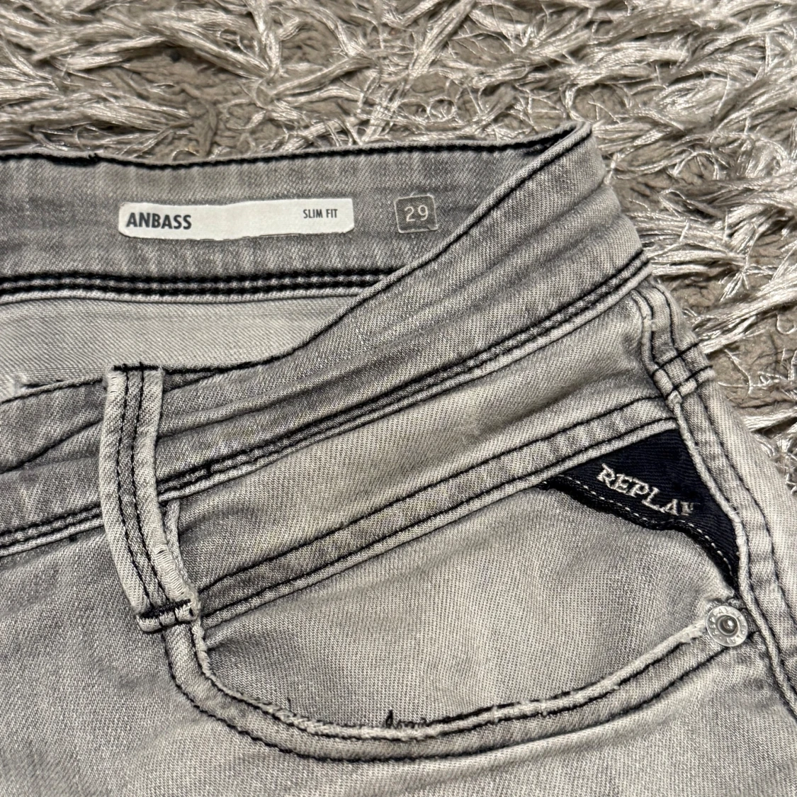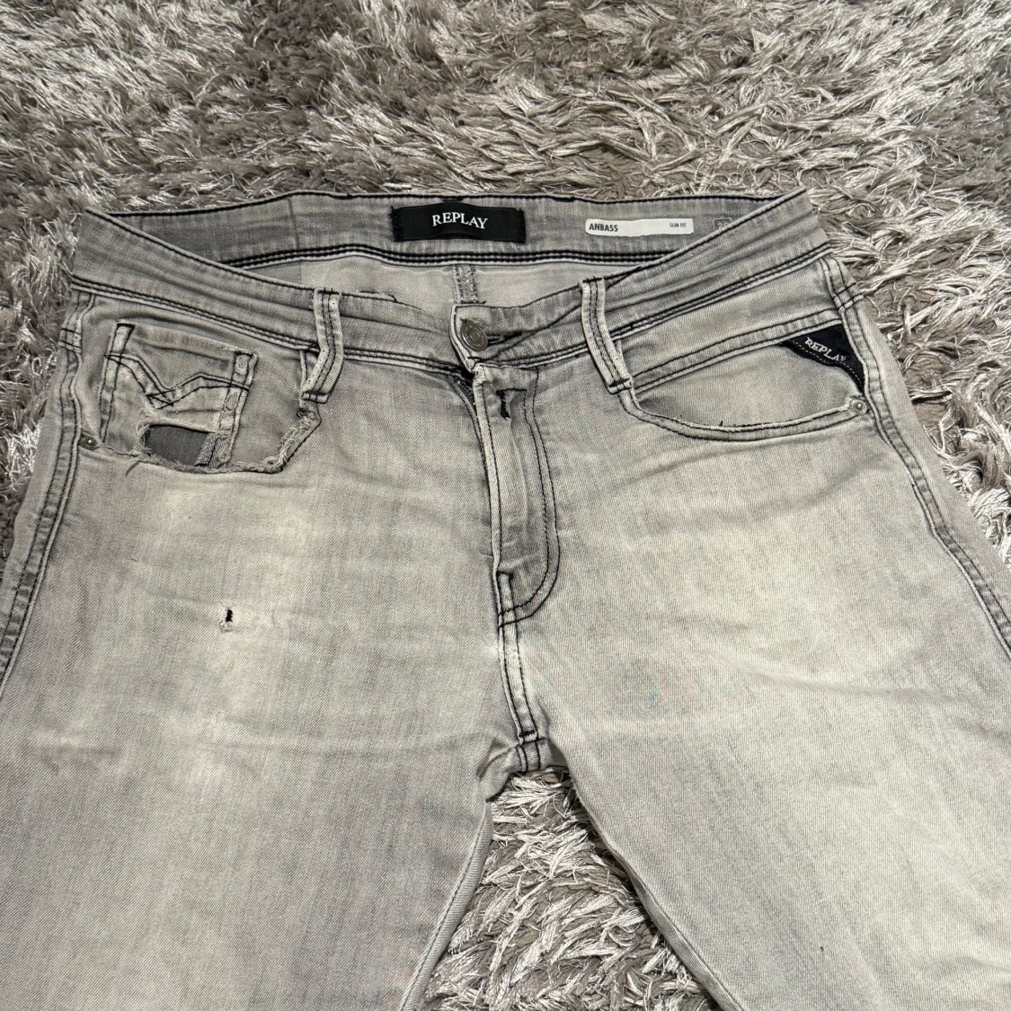 ( SÅLDA PÅ VINTED! ) Tja! Säljer dessa Replay Anbass jeans i strlk 29/30. Det är slim fit modell. Dem är använda många gånger men fortfarande fräscha bortsätt slitagen vid höger ficka/lår där det är slitet och ett litet hål. Nypriset ligger runt 1000kr. Skriv ifall du har frågor eller liknande!