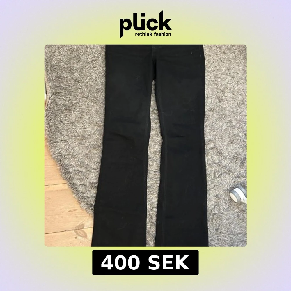 Svarta zara jeans som är low waist och bootcut. Inga slitningar.