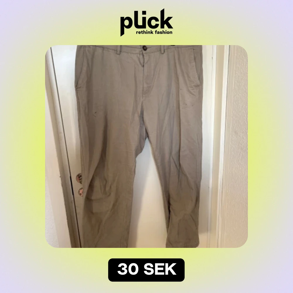 Beiga khakis från dressman så herrbyxor men kan has som högmidjade på kvinnokropp. Små fläckar vid fickorna.