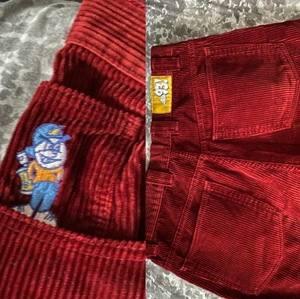 Polar 93 cord byxor i burgundy färgen och Manchester material. Original pris ligger lite över 1000kr. Använt ett par gånger men byxorna är som nya. Jag är 169 cm och byxorna är lite långa på mig om man inte vill ha dem så högt upp, smaksak. Säljer dem för de är nt min smak längre. Gullig liten figur som följer med i ”fickan”. Kom DM om intresserad! köparen står för frakten.