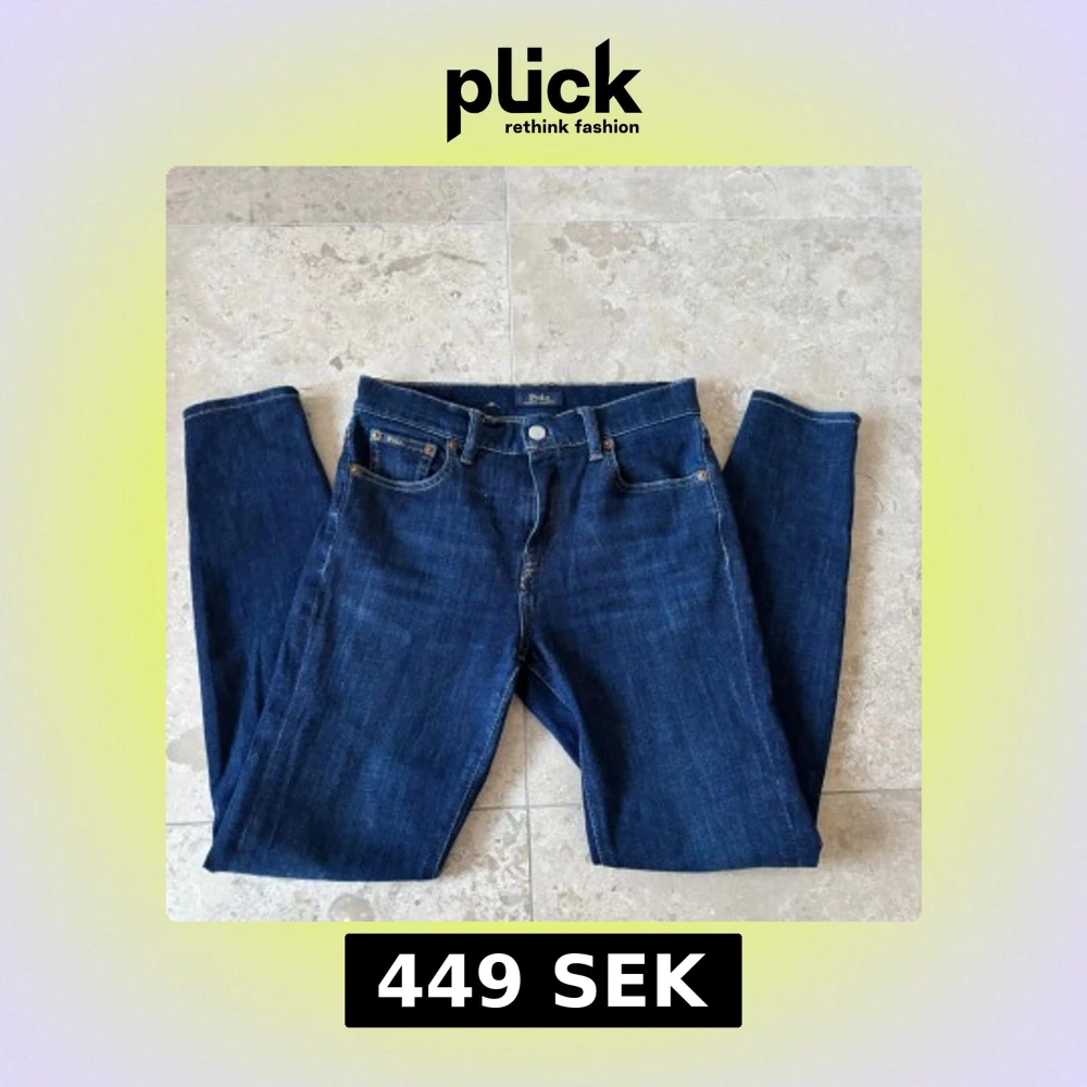 Ett par mörkblåa och stilrena polo jeans som knappt har använts. Stl W27 L28. Han på bilden är 153 och de passar perfekt. Skulle säga att de passar personer som är från 150-157cm långa. Såklart äkta. Pris ej hugget i sten⚠️