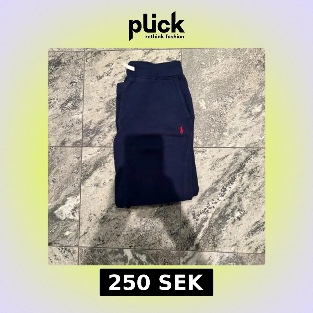 Snygga mörkblå mjukisbyxor från Polo Ralph Lauren med klassisk röd logga broderad på höften. Byxorna har resår i midjan och sidofickor, perfekta för chill eller träning. Mjukt material som känns skönt mot huden.