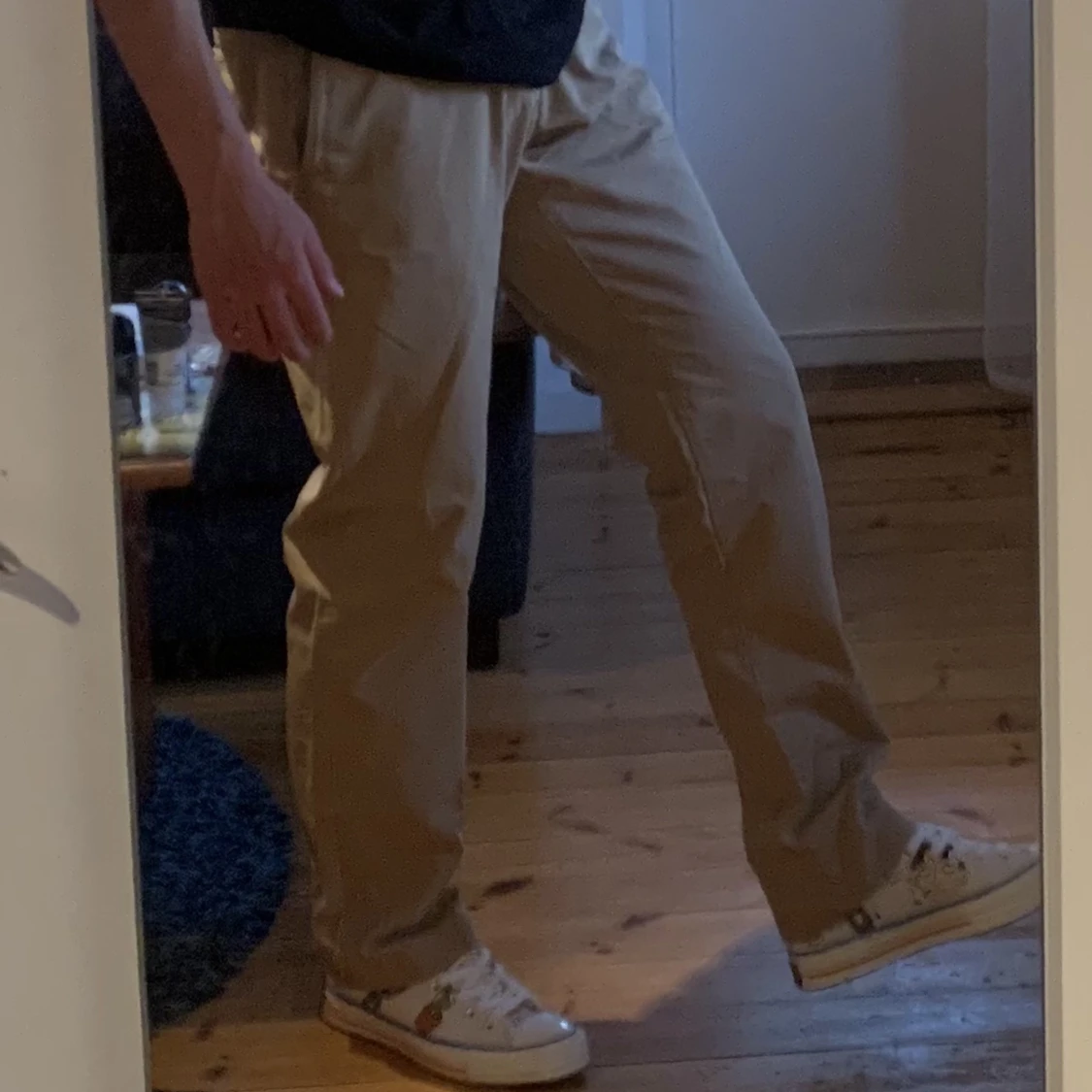 Chinos något bagy men mer straight leg. Snygga till våren.
