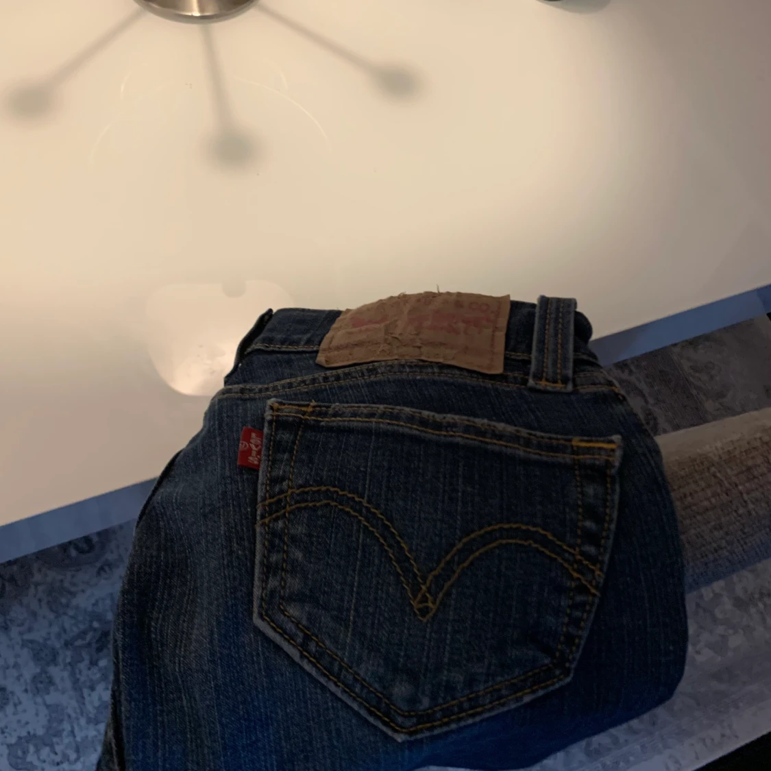 Ett par skitsnygga raka low waist vintage jeans från Levis. Dessa är i storlek M och sitter bra på mig som är storlek s/m. De är väldigt populära och trendiga just nu!