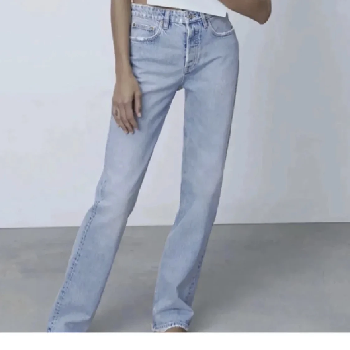 Säljer nu mina snygga mid rise straight jeans från zara , knappast använda ❤️🔥❤️🔥