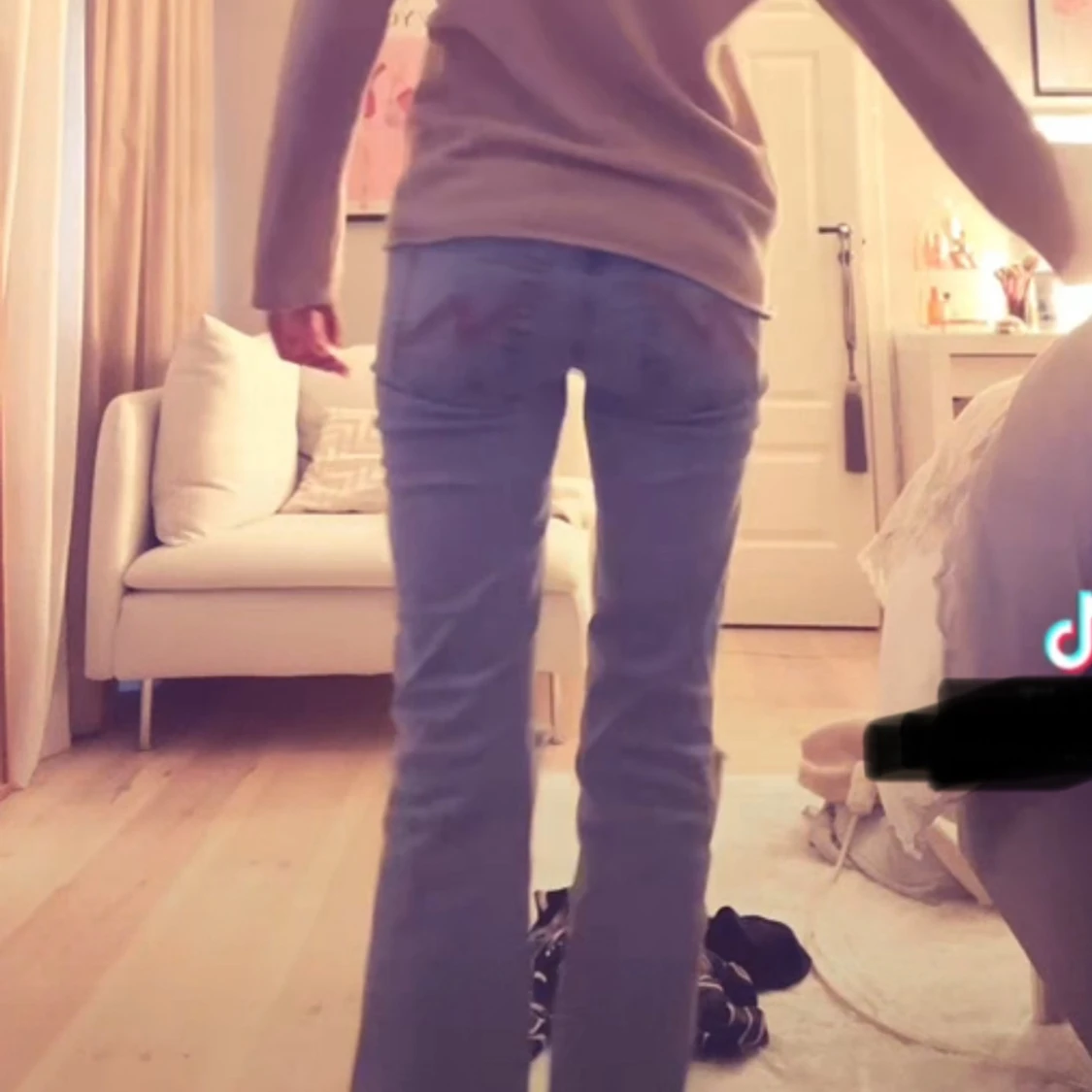 Så fina, lågmidjade med rosa brodyr bak. 💖 Något slitna längst ner på jeansen då dom släpat i backen, är på semester just nu så har tyvärr ingen bild, men om nödvändigt fixar jag så snart jag kan!