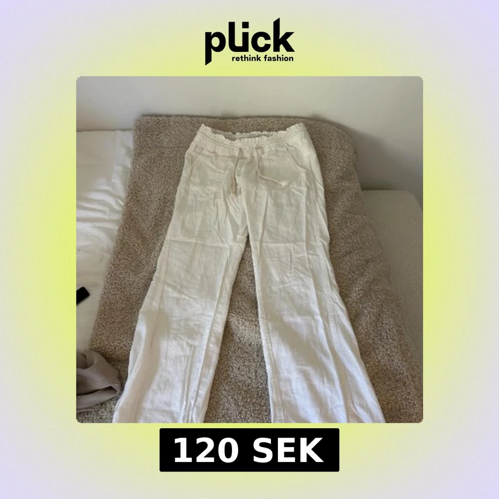 Snygga vita linnebyxor från Roxy med elastisk midja och snörning. Perfekta linnebyxor, populära. För korta för mig så säljer. Tar frakt