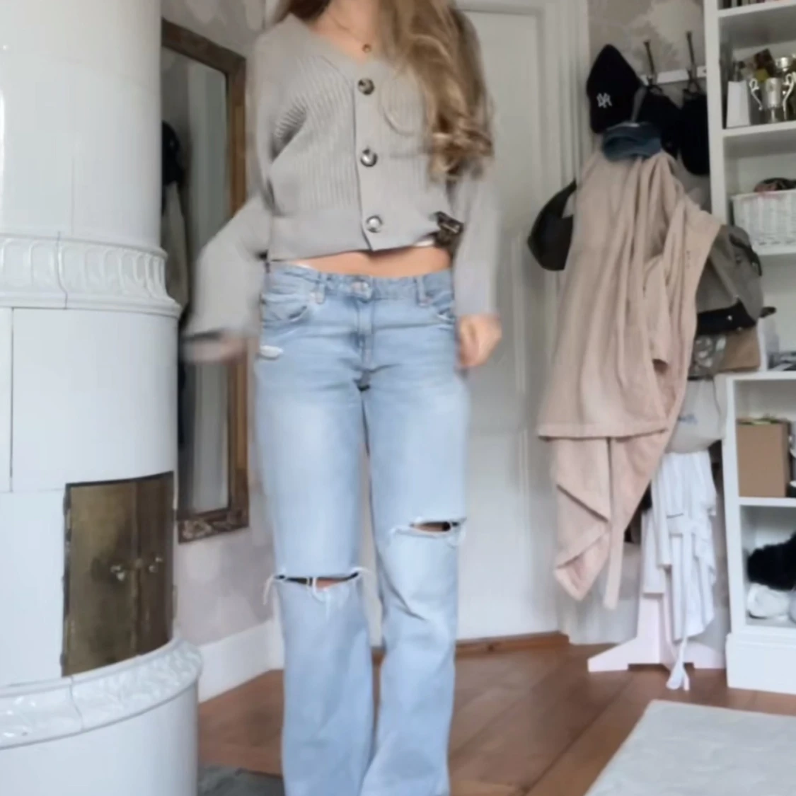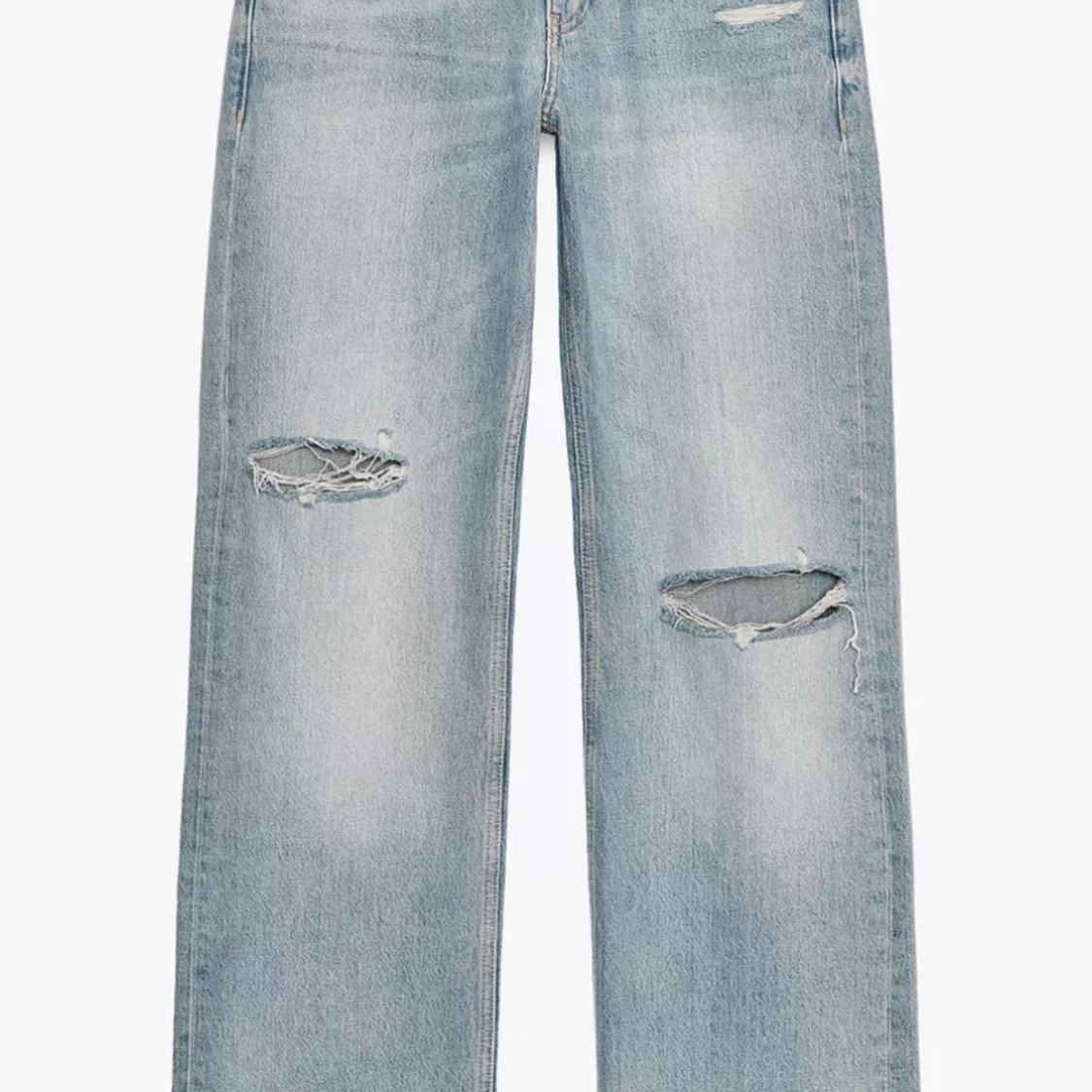 As snygga jeans från Zara som är lågmidjade och baggy!🥰🤩lite slitna längst ned vid foten