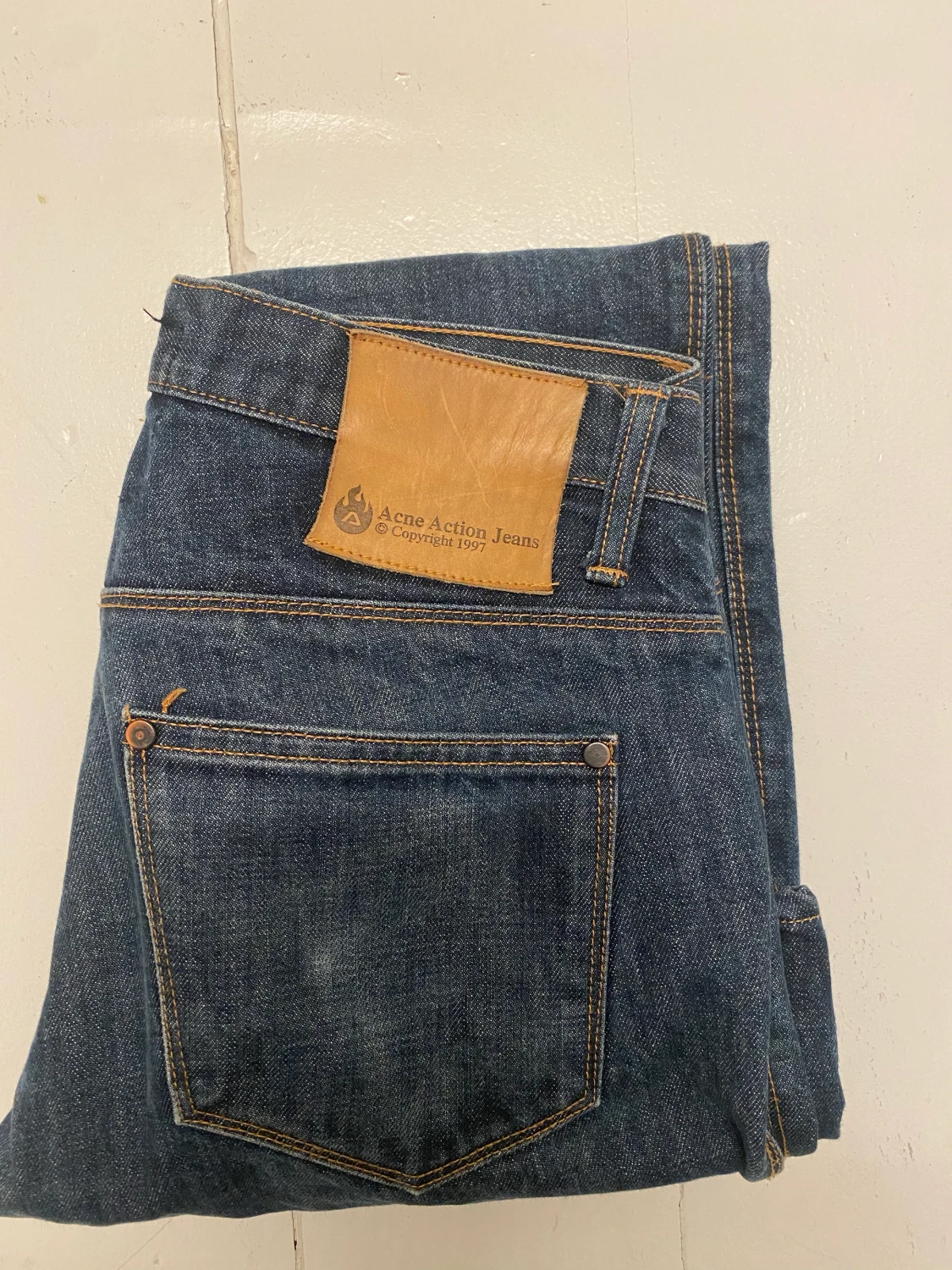 Funderar på att sälja mina jätte snygga lågmidjade jeans från acne om jag får ett bra bud, står ingen storlek men passar perfekt på mig som oftast brukar ha 34