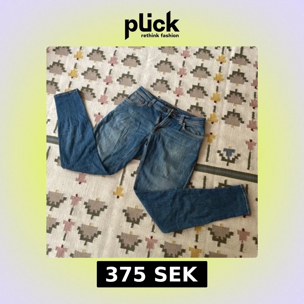 Säljer ett par klassiska blå jeans från Nudie i storlek W31 L32 i modellen skinny lin. Finns en skavank i grenen (se bild 3), därav priset. De sitter ganska brett och är tillverkade i mjukt jeanstyg.