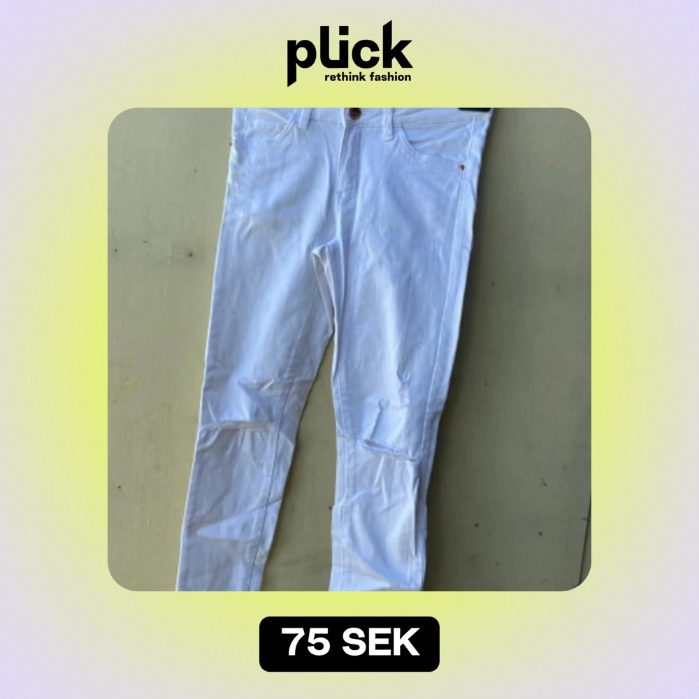 Säljer ett par vita byxor i storlek 152. De har en klassisk design med fickor både fram och bak. Perfekta för en stilren look!