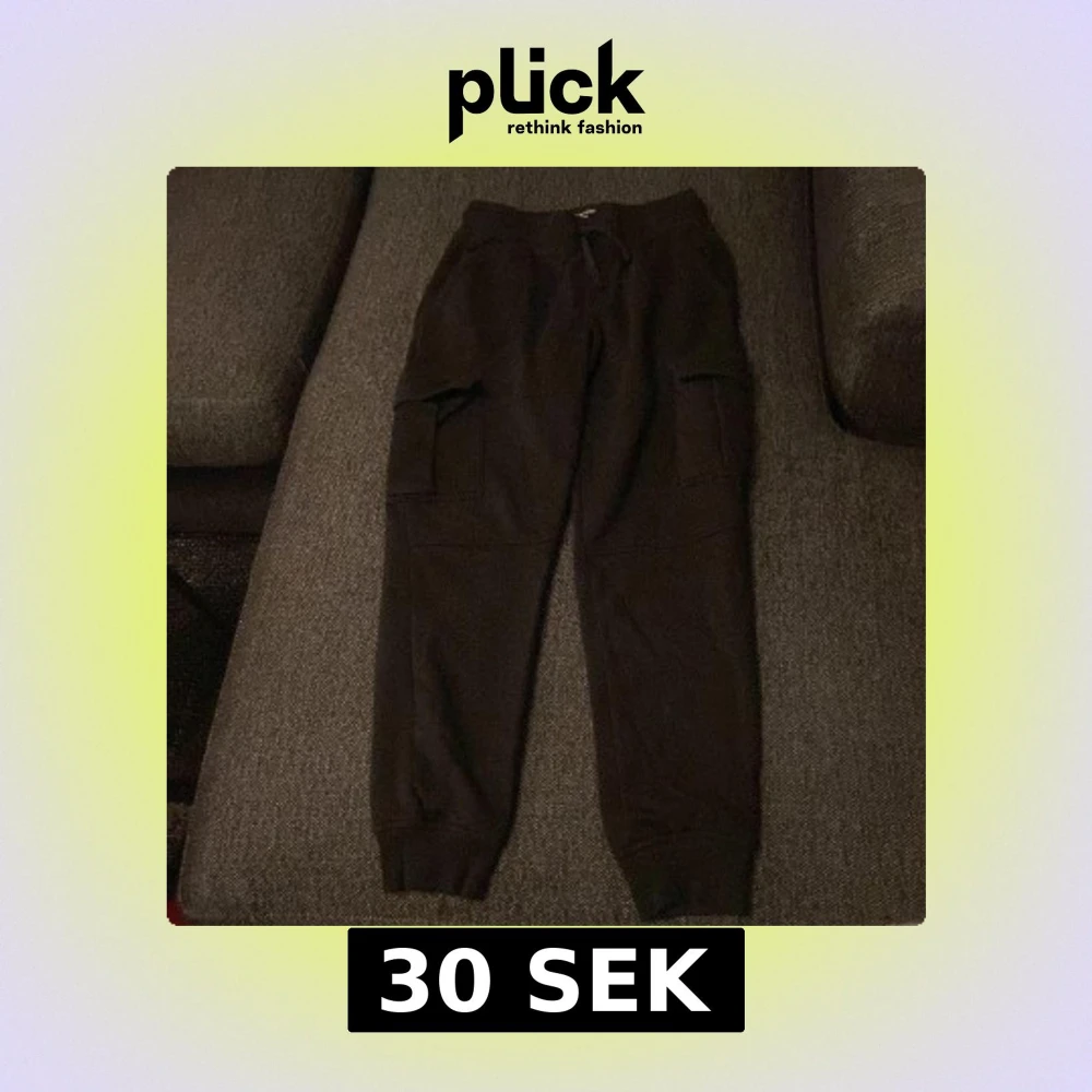 Svarta cargopants med bekväm snörning i midjan och stora fickor på sidorna. Byxorna har ribbade muddar vid bensluten och är gjorda i mjukt material som passar chill och streetwear. Perfekt för dig som gillar avslappnad stil.