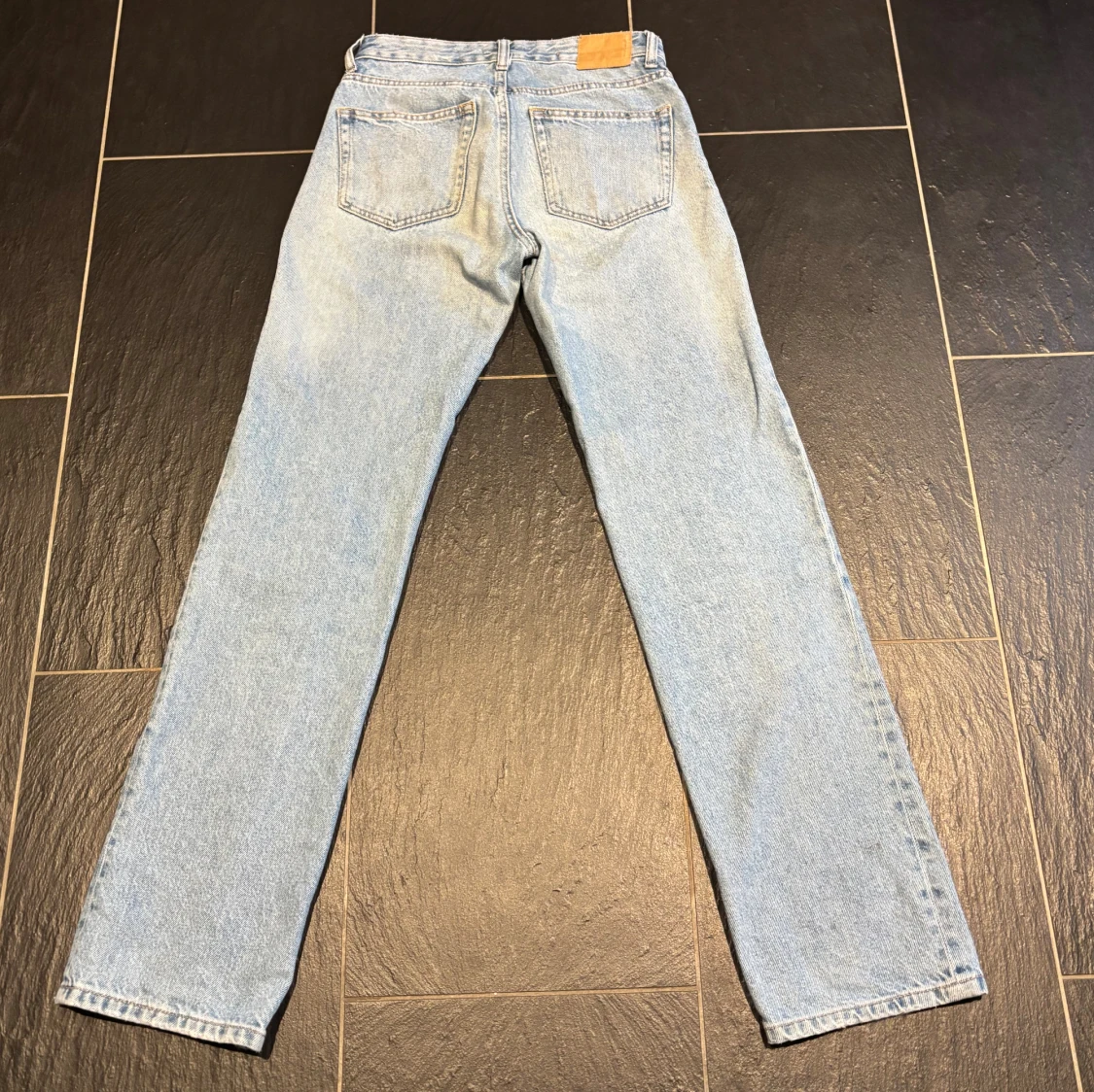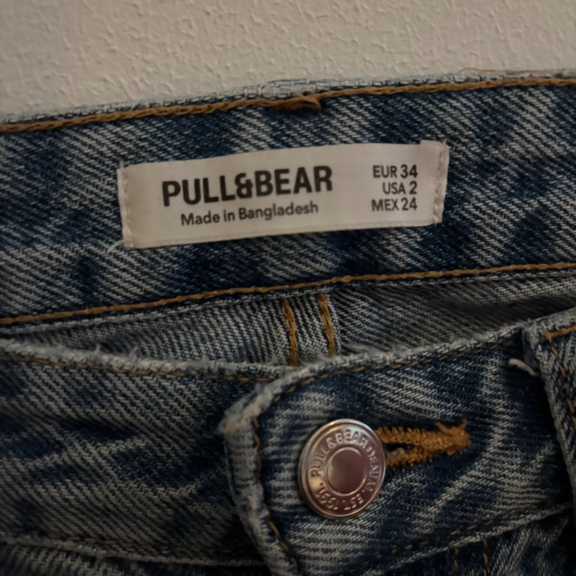 Säljer ett par ljusblå jeans från Pull&Bear i klassisk rak modell. Jeansen har fem fickor, normal passform och stängs med knapp och dragkedja. Perfekta för en chill och stilren look. Materialet är klassisk jeansbomull.
