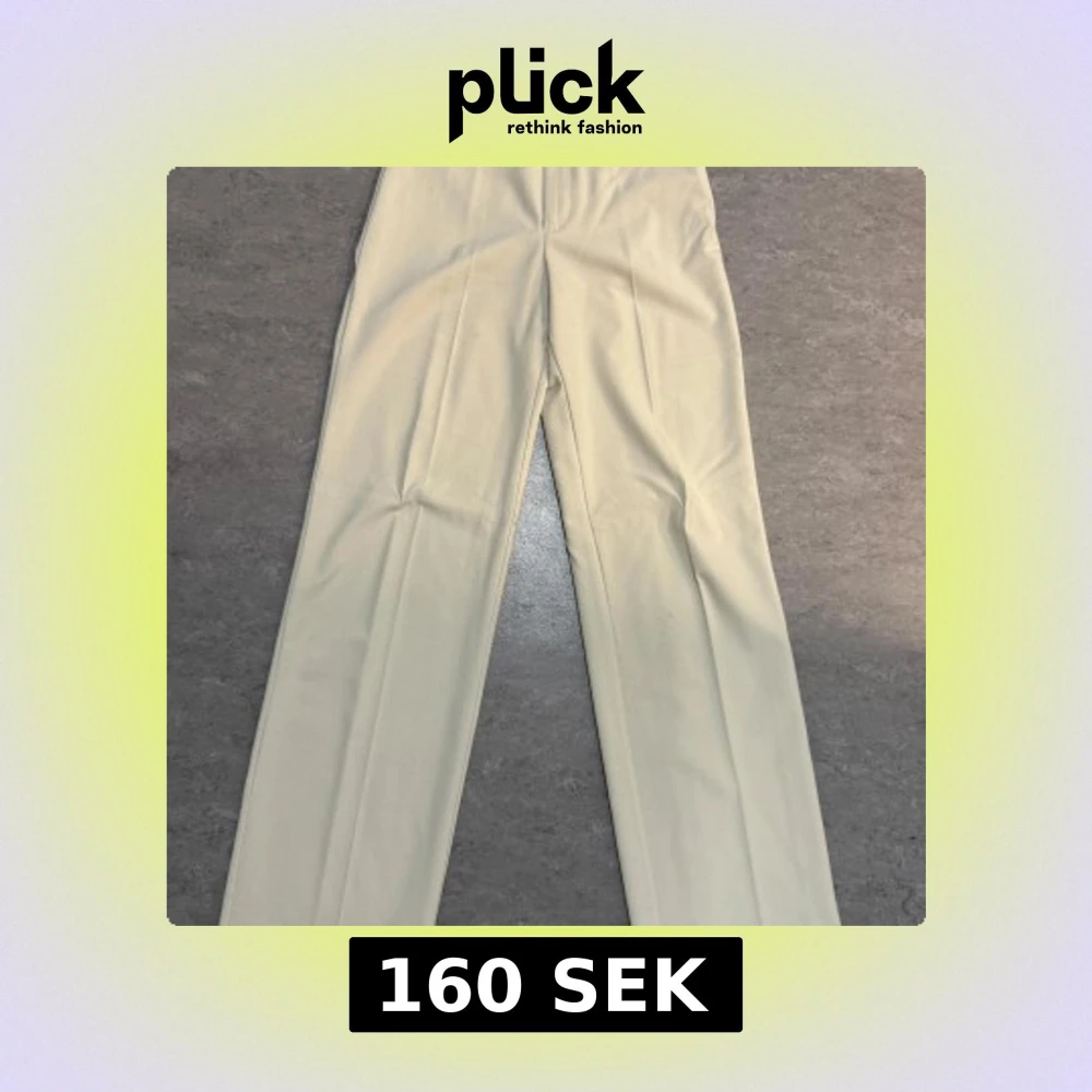 Säljer ett par stilrena beige kostymbyxor från Pull&Bear i storlek 34. Byxorna har raka ben, hög midja och stängs med knapp och dragkedja. Perfekta för en clean och klassisk look. Är öppen för bud, så det är bara att skicka!💕