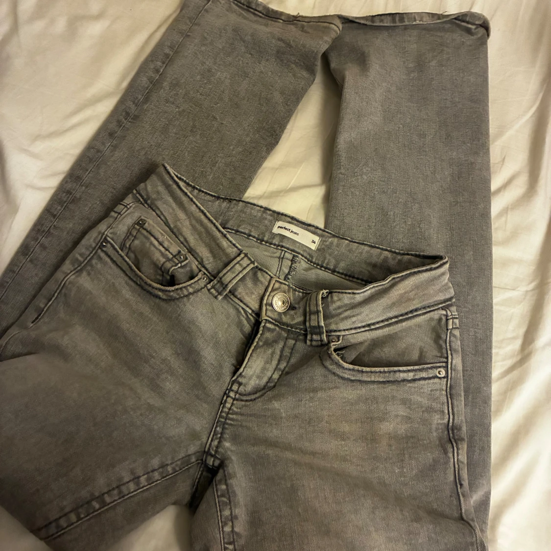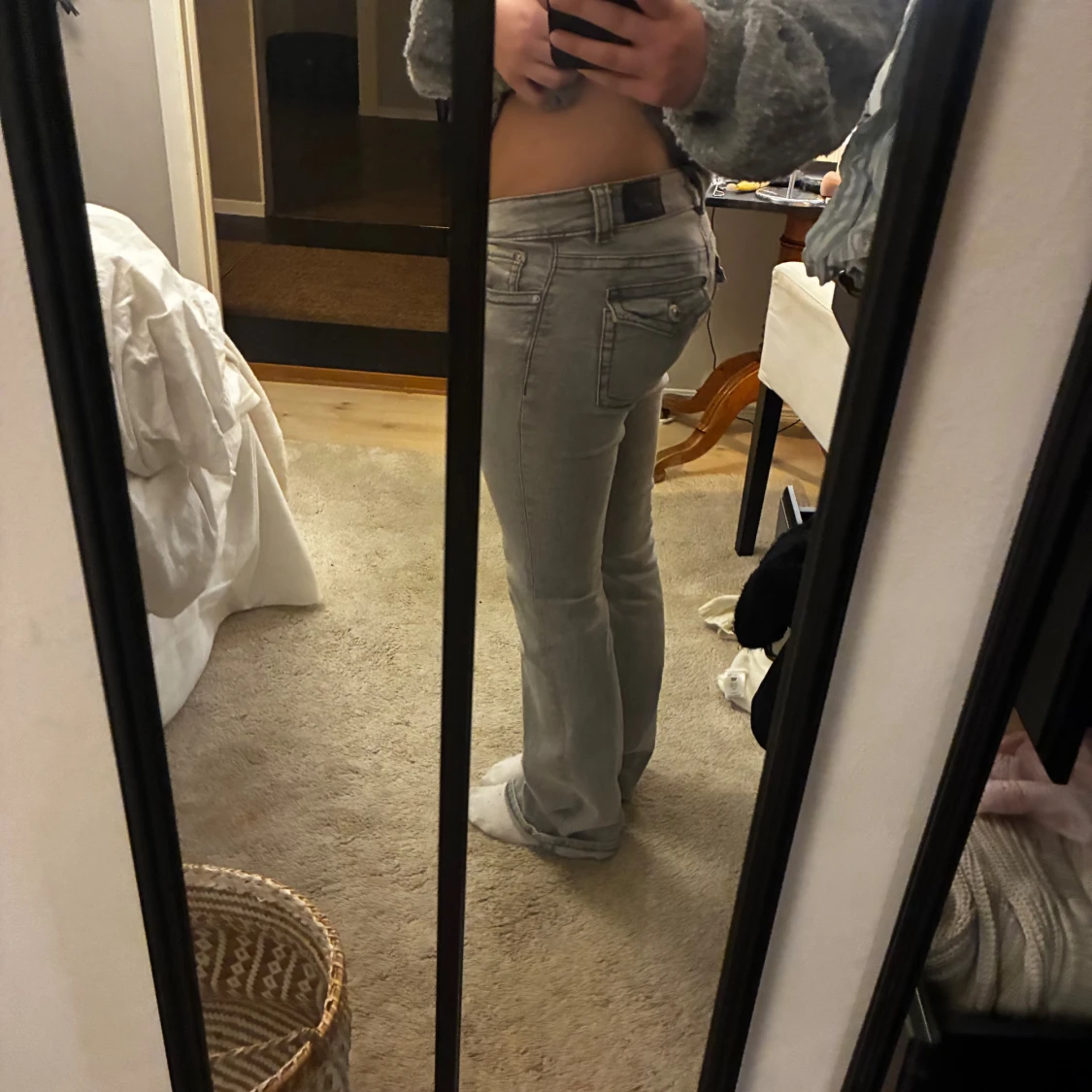 Säljer ett par jätte snygga lågmidjade ljusgrå jeans super bra skick storlek 34❣️