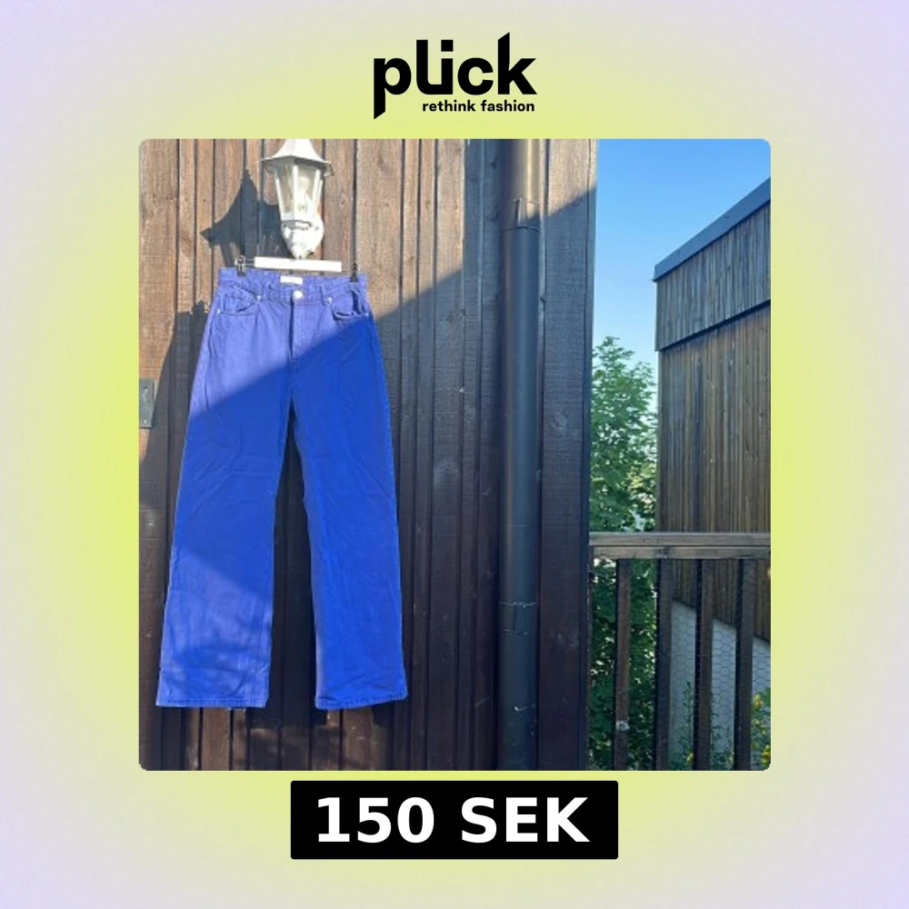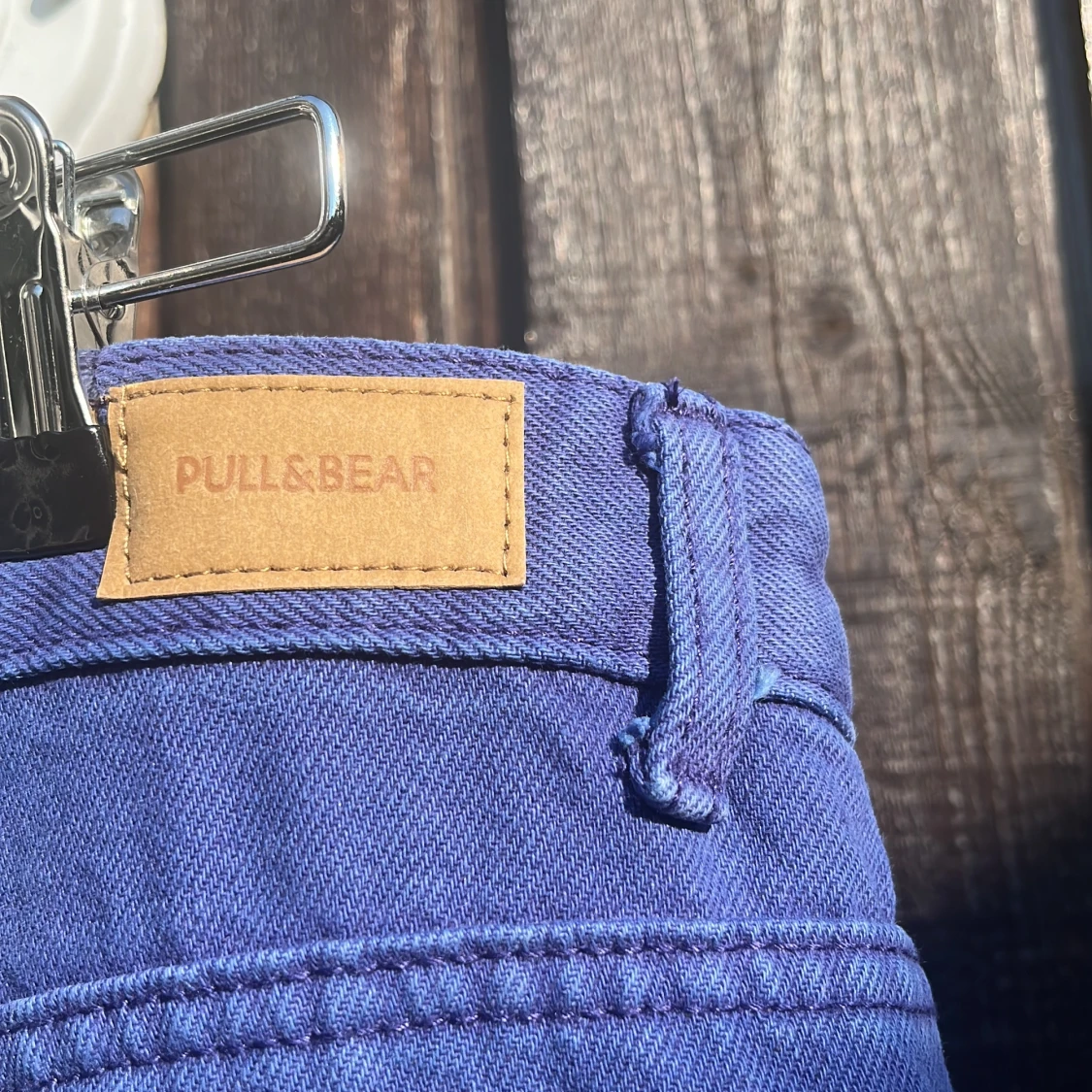 Säljer ett par riktigt snygga blå jeans från Pull&Bear med breda ben och klassisk femficksdesign. Byxorna har hög midja och är gjorda i bomull, perfekta för dig som gillar en avslappnad och trendig look. Bootcut
