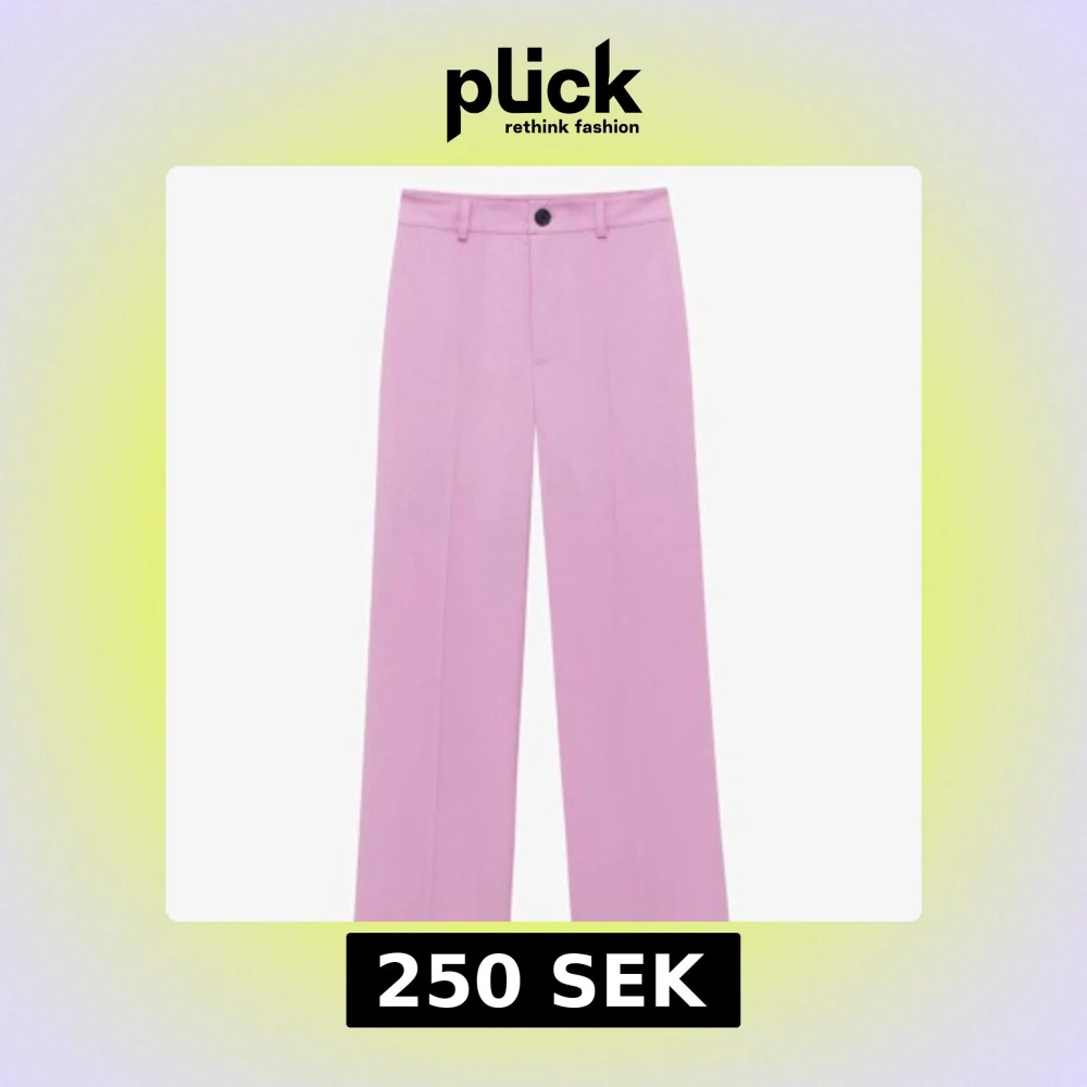 *använd max 1-2 ggr* Snygga rosa kostymbyxor med hög midja och raka ben. Byxorna har en knapp framtill och är perfekta för en stilren look. De är tillverkade i ett mjukt material som ger en bekväm passform.