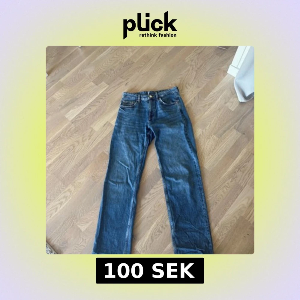 Klassiska blå pull&pear jeans med rak passform och fem fickor. Jeansen har hög midja, knappgylf och är tillverkade i robust denim. Perfekta för dig som gillar en tidlös och avslappnad stil.