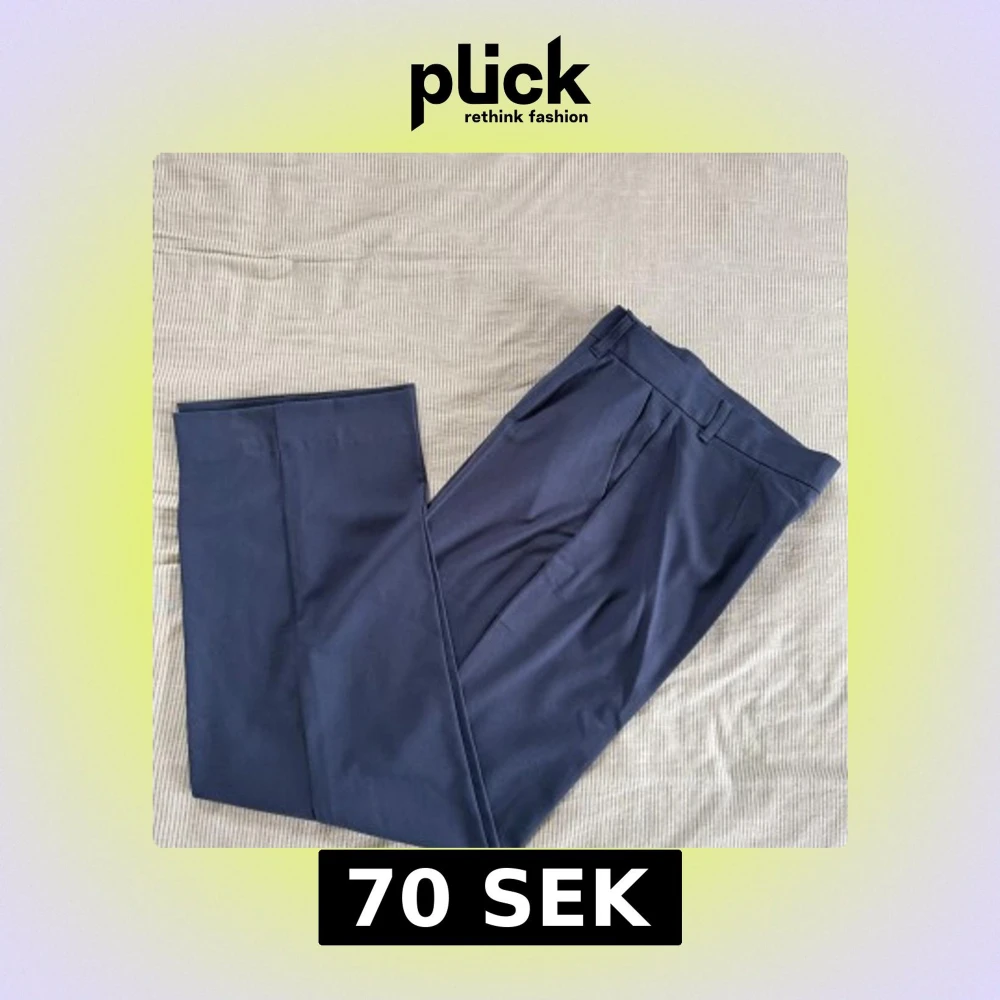 Snygga mörkblå kostymbyxor från Pull&Bear Black Label. Byxorna har raka, vida ben, hällor för bälte och ficka bak. Perfekta för en clean och stilren look. Materialet är mjukt och följsamt, vilket gör dem bekväma hela dagen.