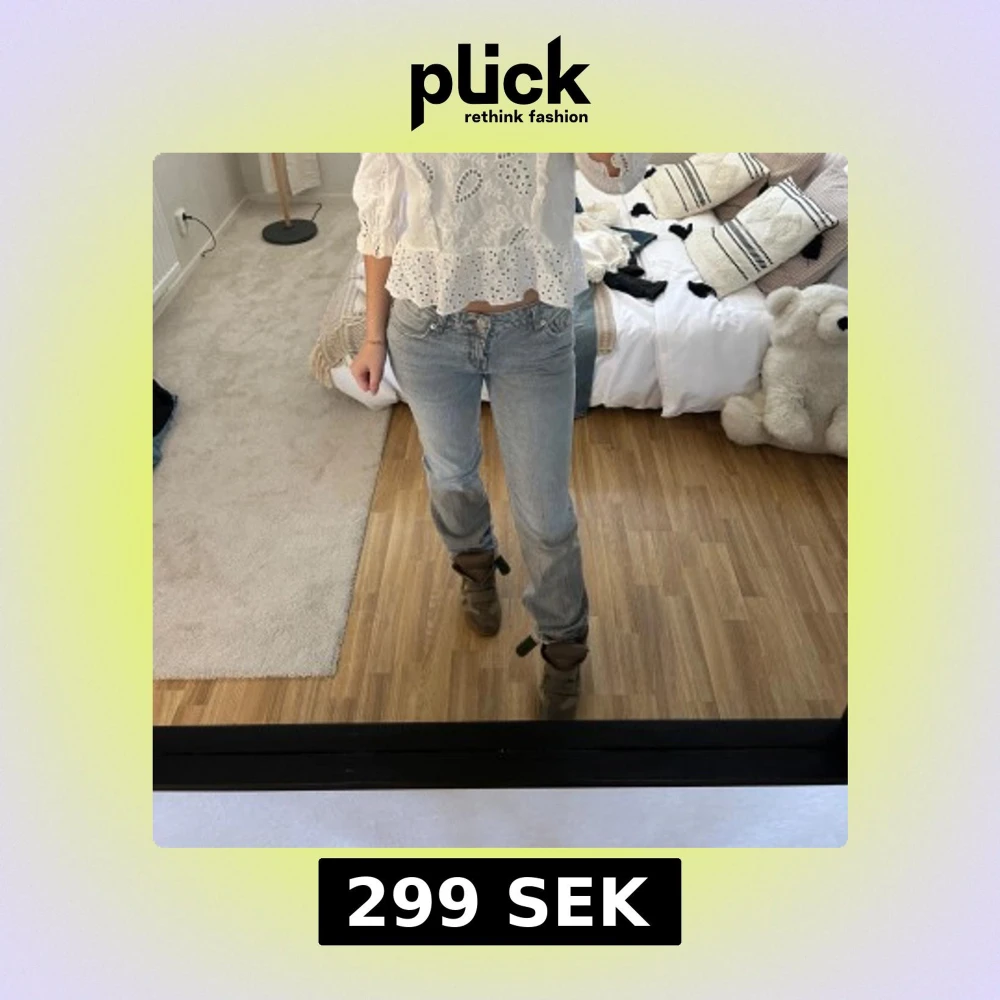 Snygga low waist ljusgrås jeans med en klassisk design. De är lite bredare längst ned så att det går över skorna.