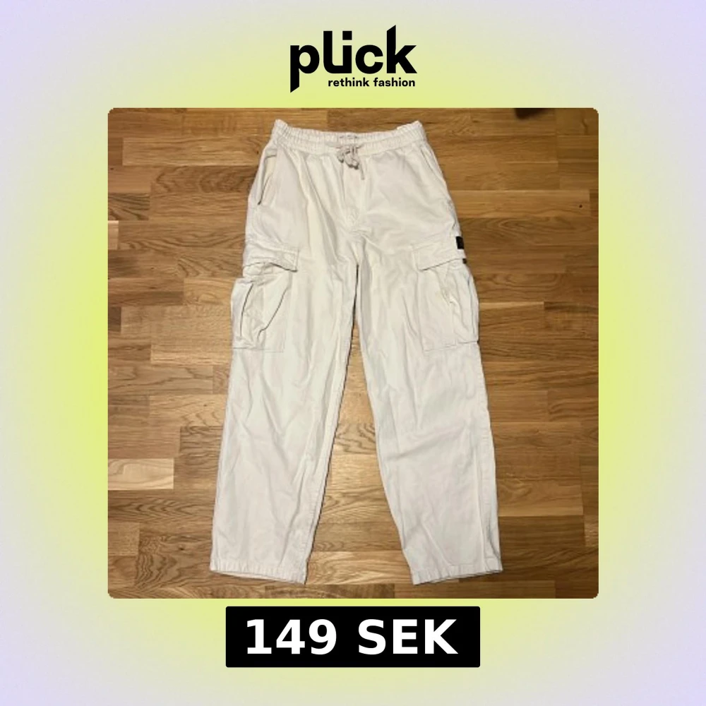 Färgen är beige och storleken är W30 L32. Den har knappt använts och har inga defekter.