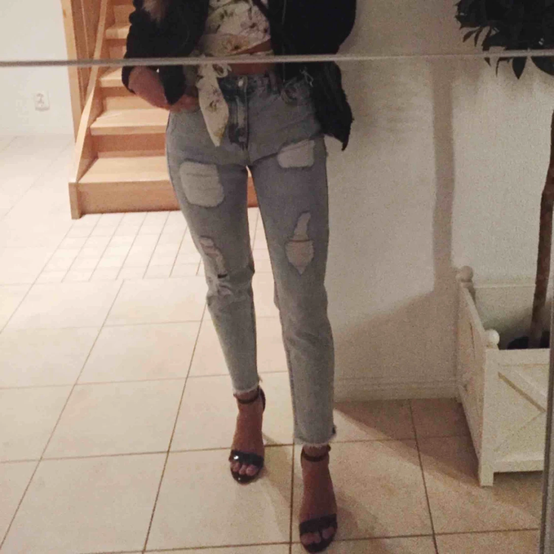 Väldigt snygga slitna mom jeans ifrån Pull & Bear! Använt 2 gånger, i bra skick! Frakt tillkommer