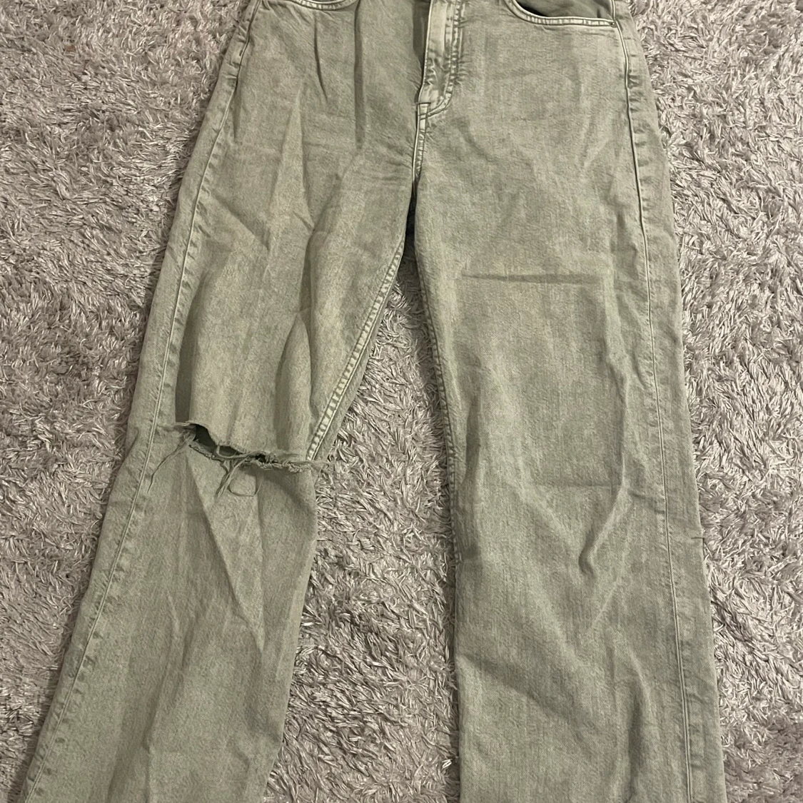 Unika baggy jeans från Pull & Bear, de är grön-gråa och är i mycket bra skick. Har använts bara 2-3 gånger. Skriv gärna för mer bilder 💗💗