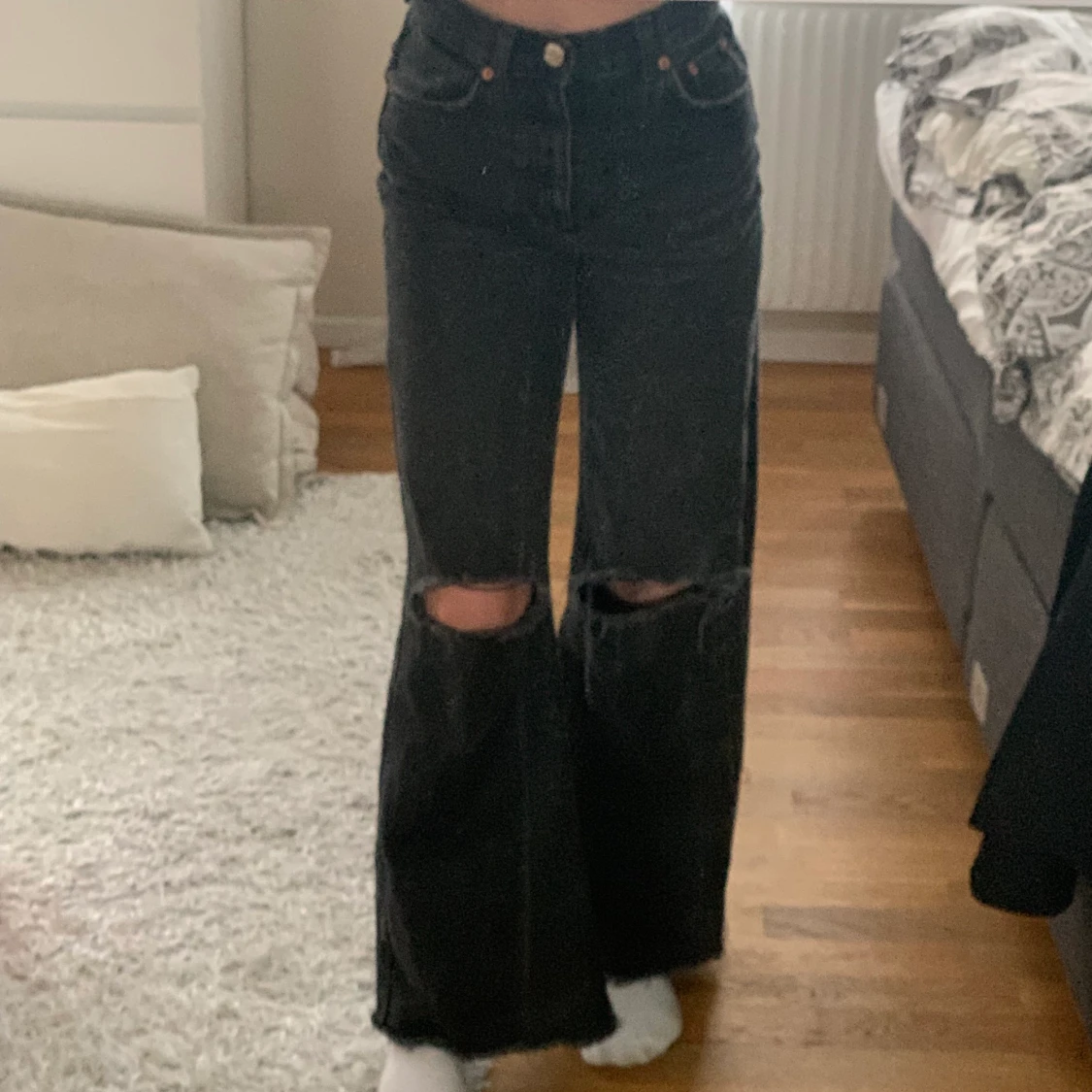 Superfina svarta jeans från pull&bear som tyvär blivit för korta på mej (jag är 163 cm) de är avklippta och har trådat sig snyggt längst ned. Snygga hål och sitter perfekt. Skriv om du har frågor elr intresse. 200 + frakt🥰