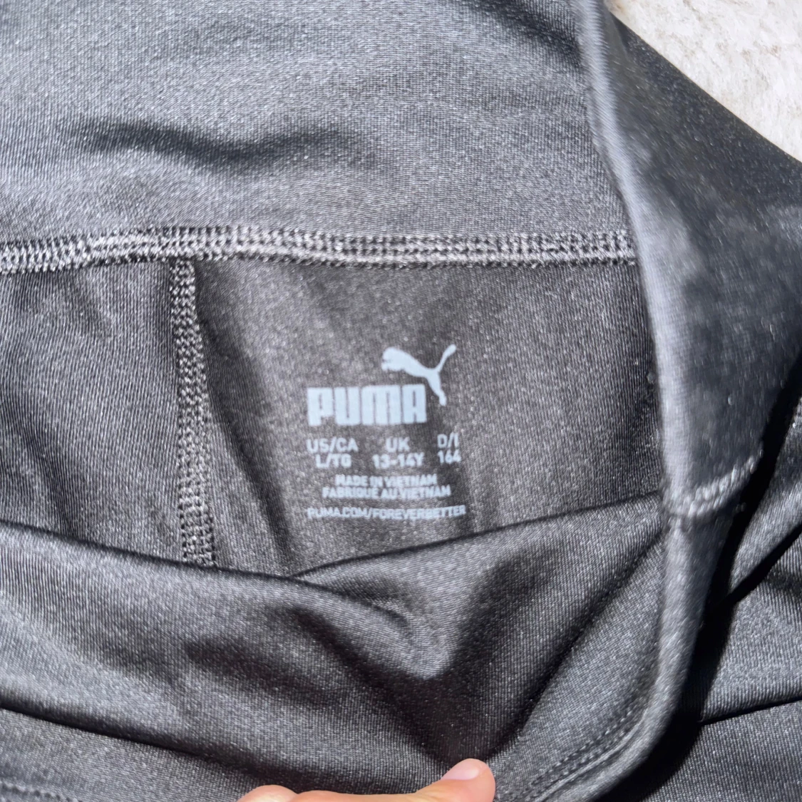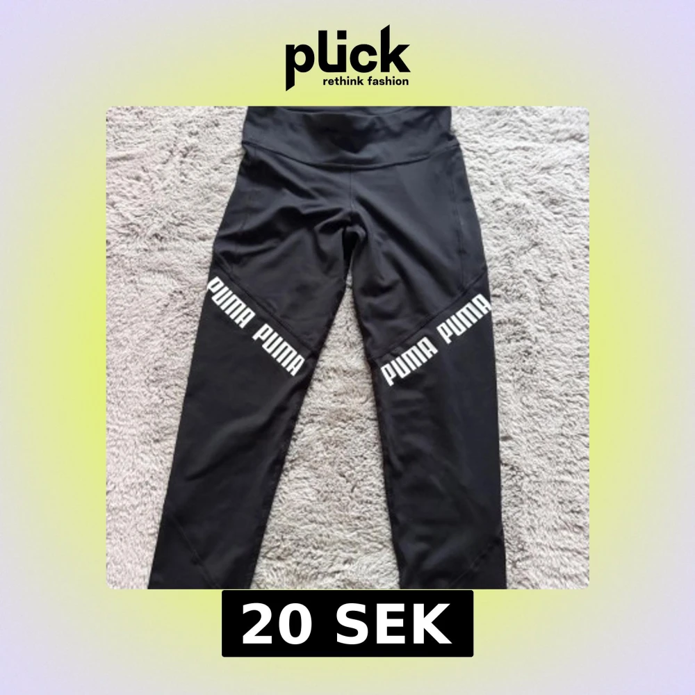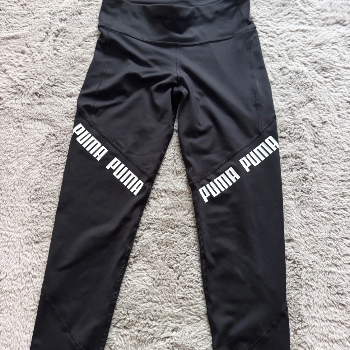 Svarta leggings från Puma med bred midja och vit PUMA-logga på båda benen. Köpta från stadium använd ngt par gånger☺️