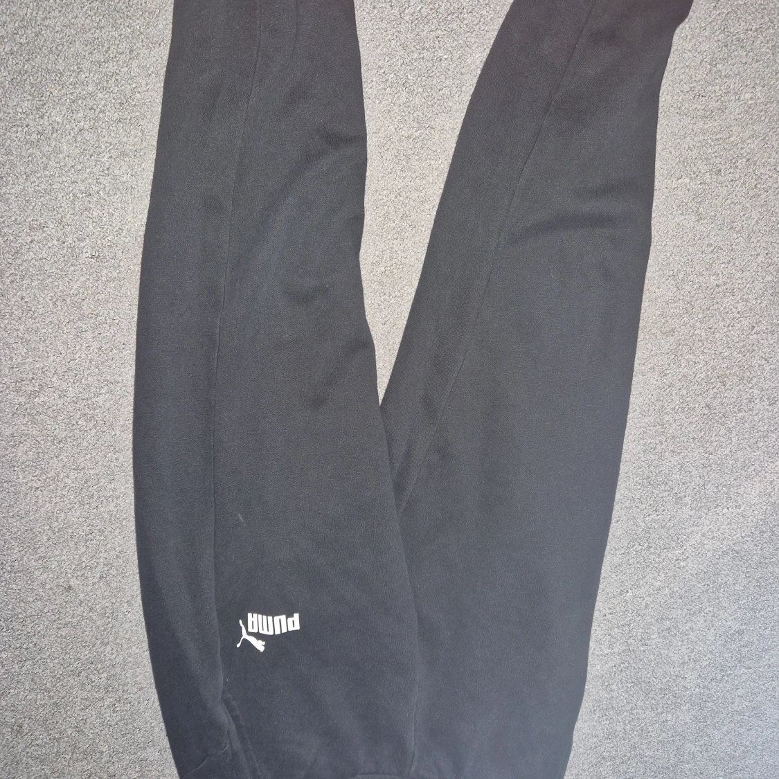 Snygga svarta mjukisbyxor från Puma med logga på benet. Perfekta för en avslappnad stil eller träning. Byxorna har en bekväm passform och är gjorda i mjukt material.