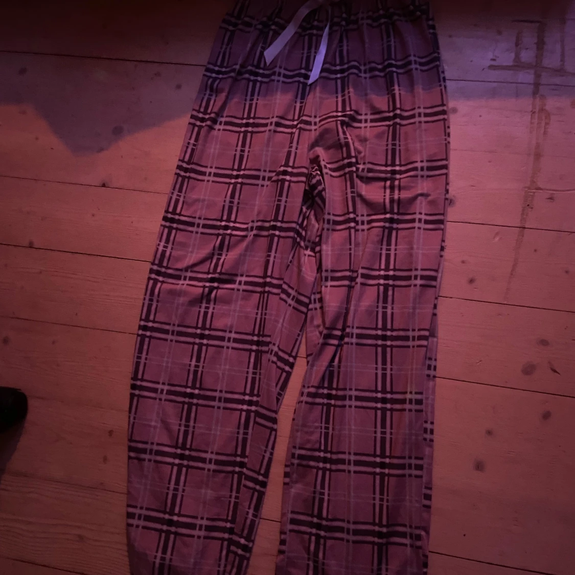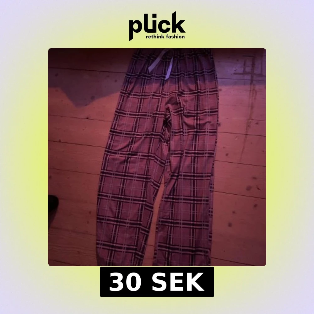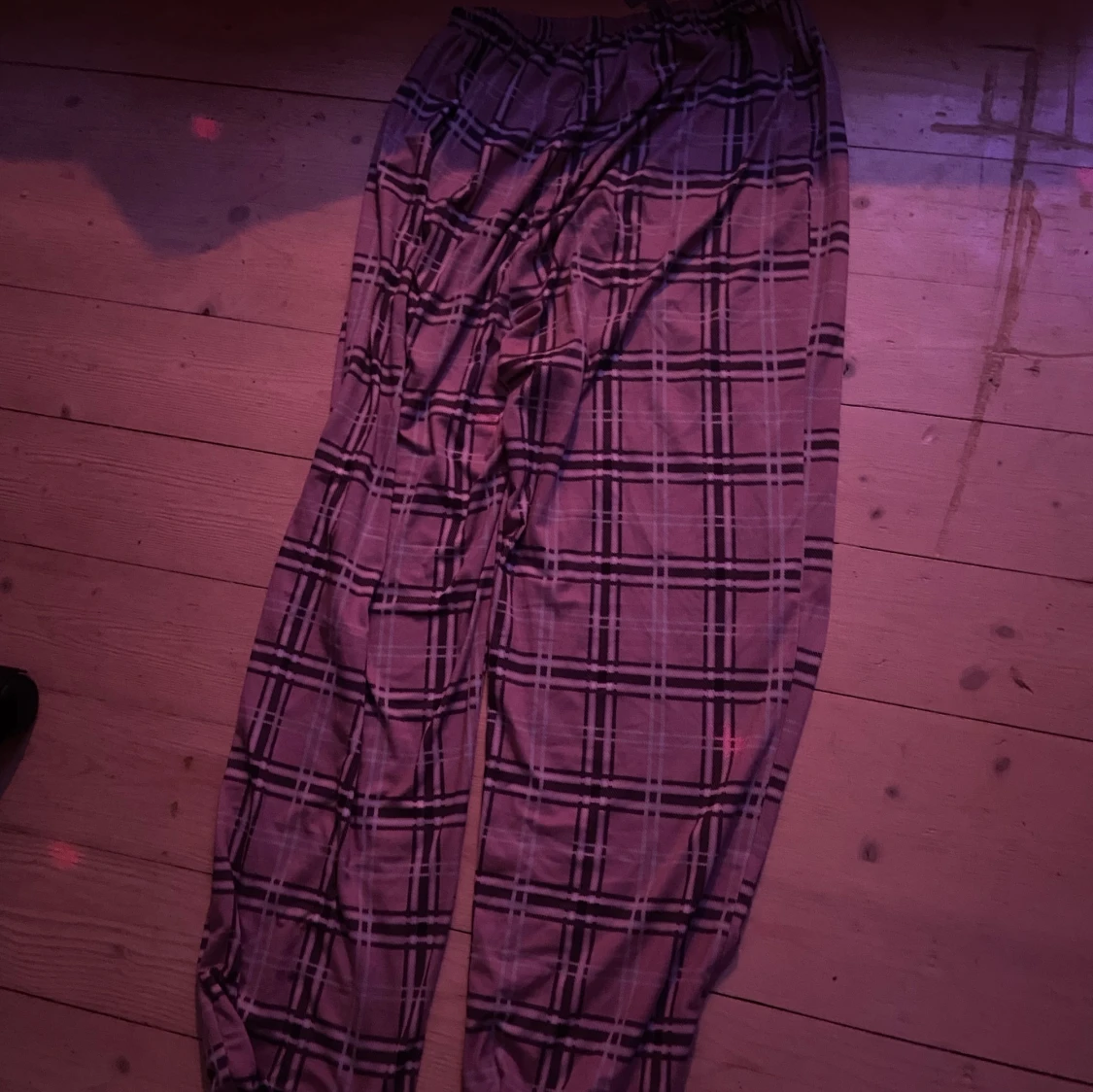 Säljer ett par bekväma byxor med rutig design och snörning i midjan. Perfekta för en avslappnad stil.