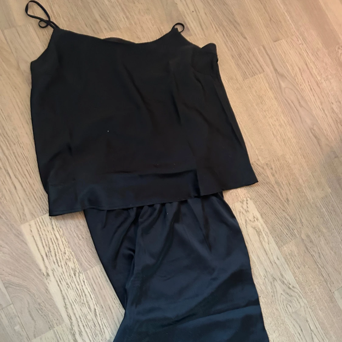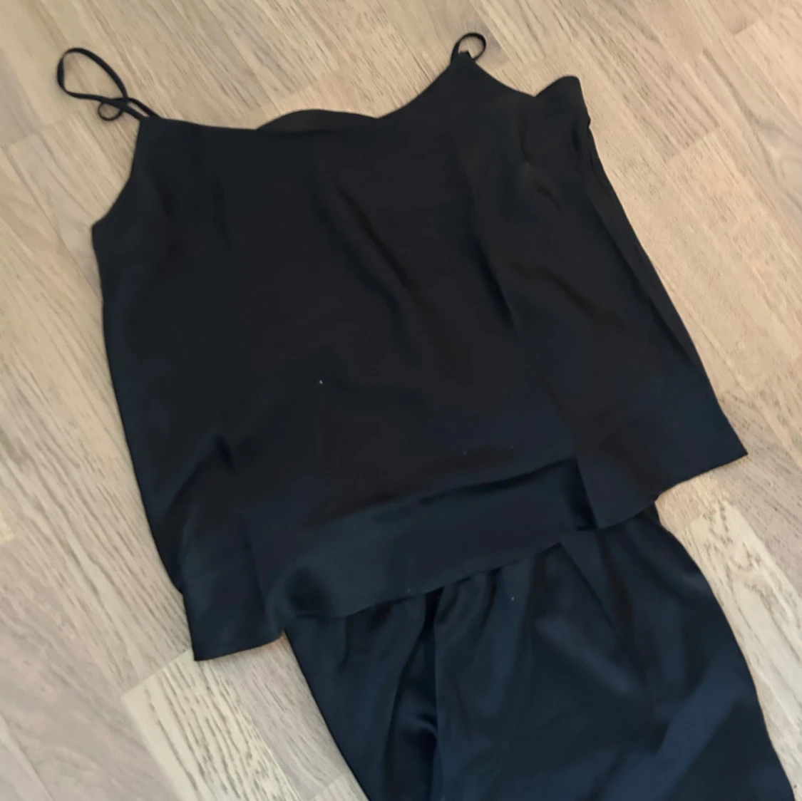 Ett otroligt lyxigt pyjamas set i Satin. Ett linne och byxor till. Oansvända med lapparna kvar.
