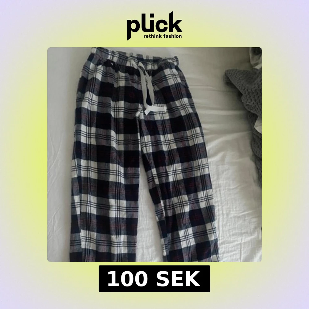 Mysiga pyjamasbyxor i bomull med tjockt material som är varmt, är i bra skick utom en målarsfärgsfläck som man knappast märker av och enkelt kan få bort.
