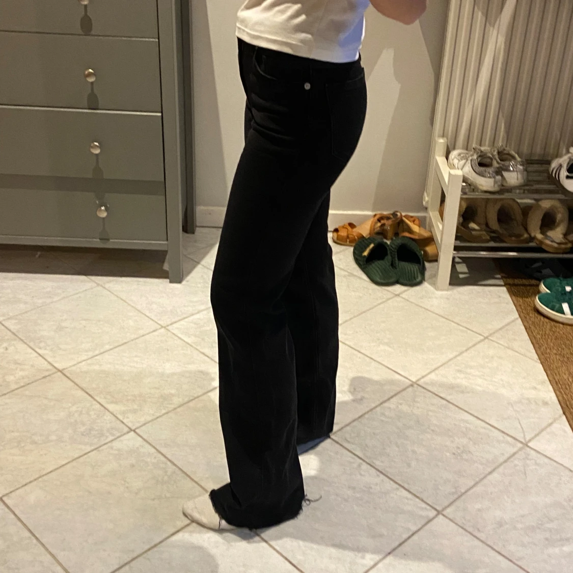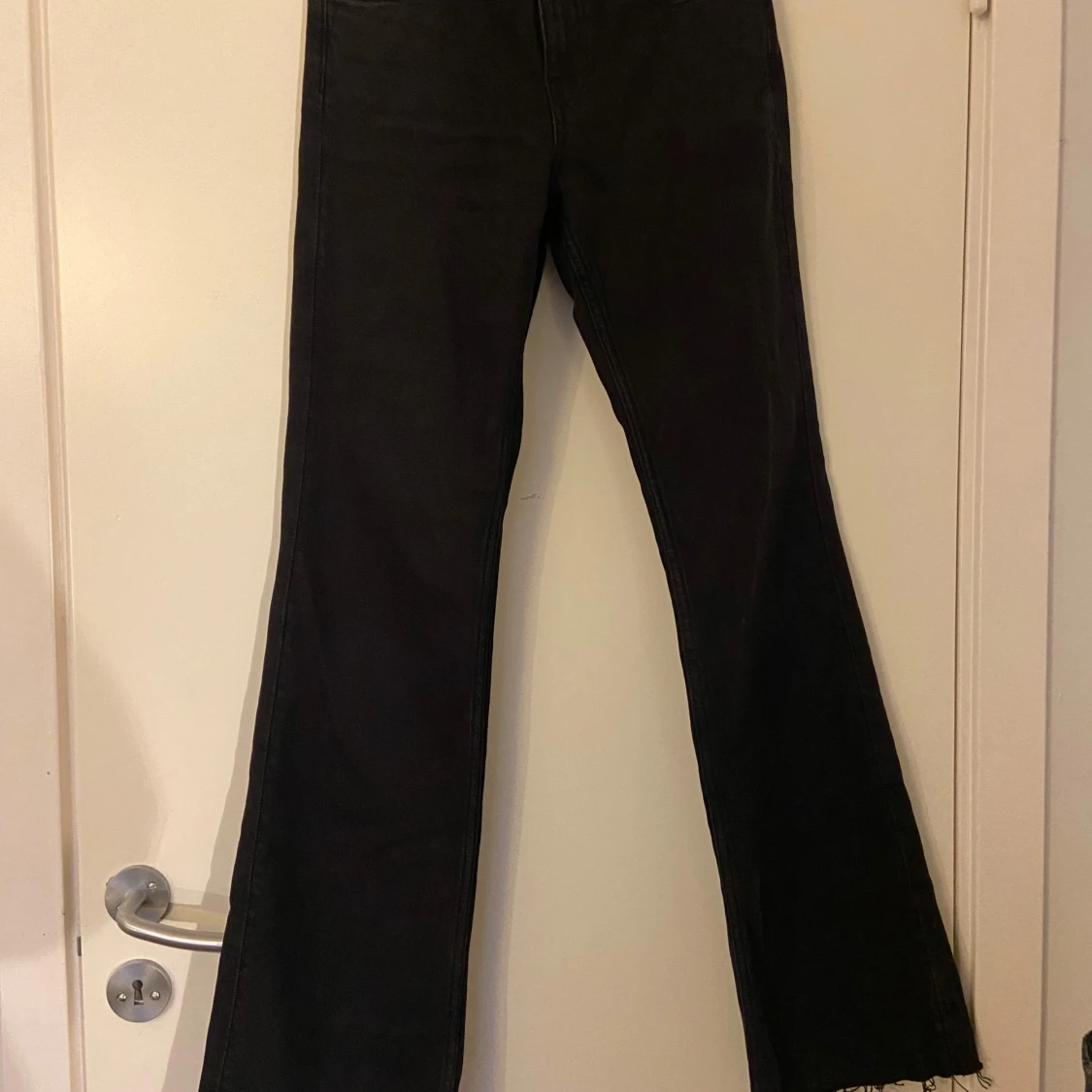 Säljer dessa jättefina svarta midwaist raka/bootcut jeans från Mango med råa kanter. Säljes pga att jag råkade köpa dubbelt. De är aldrig använda så skicket är superbra!
