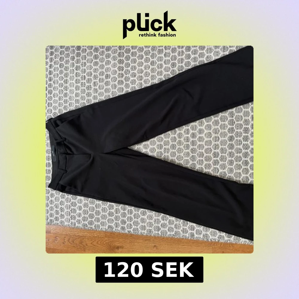 Stilrena svarta kostym byxor som stängs med både dragkedja och knapp. Med fickor på framsidan☺️