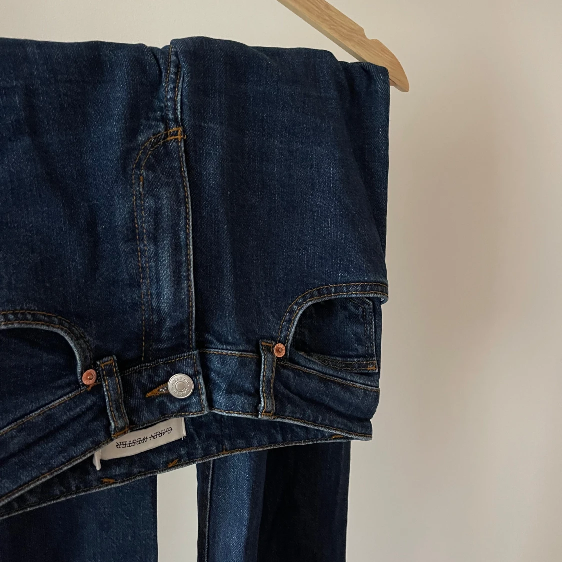Snygga, trendiga, raka, långa, mörkblå jeans!! Sitter väldigt fint på!!❤️🔥🤩🩷