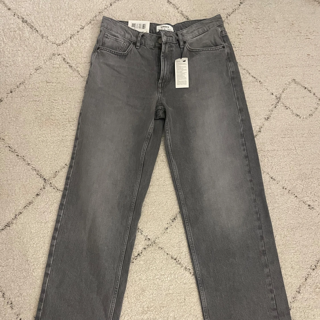 Grå raka jeans från Lindex. Mid waist. Ny med lappar. Nypris 599.