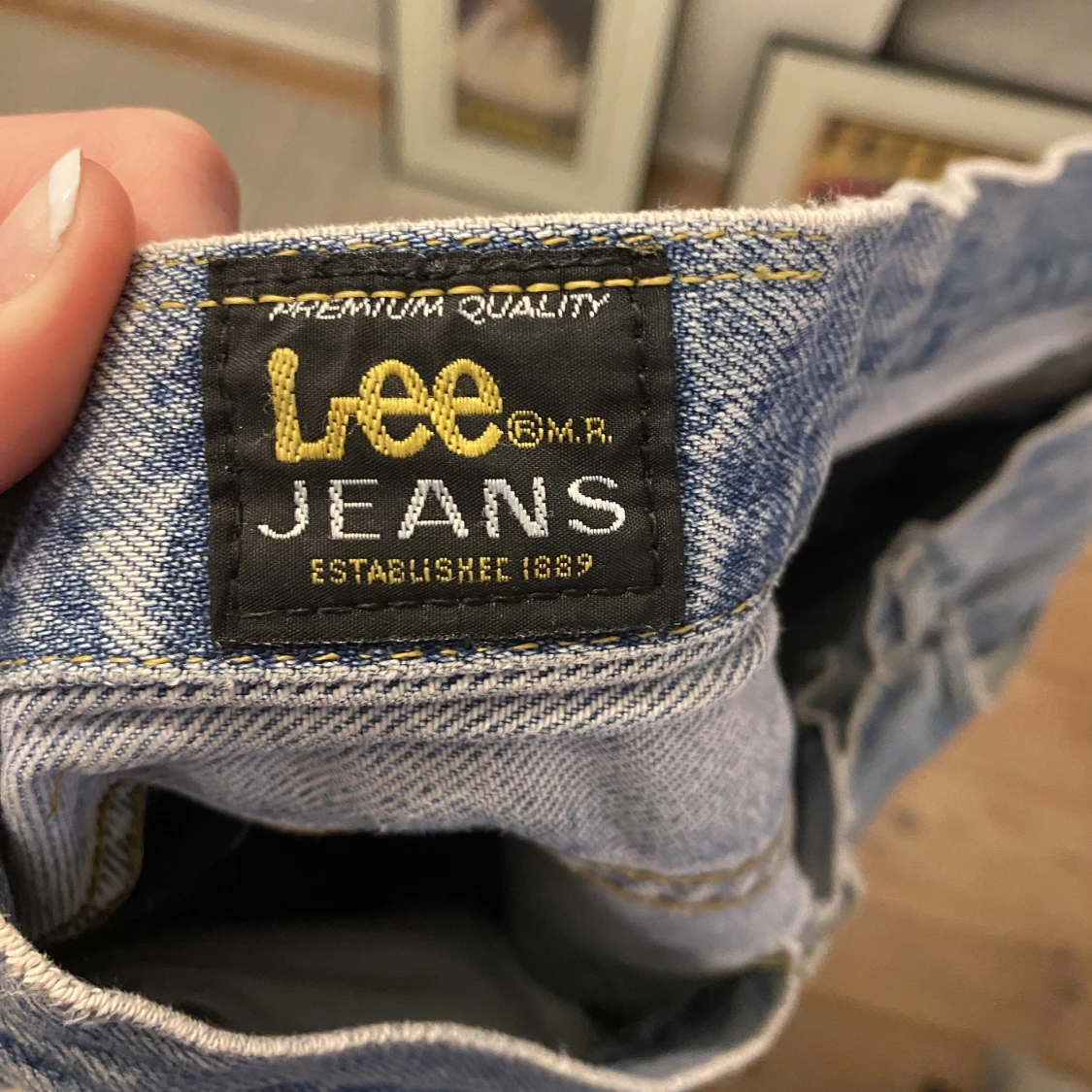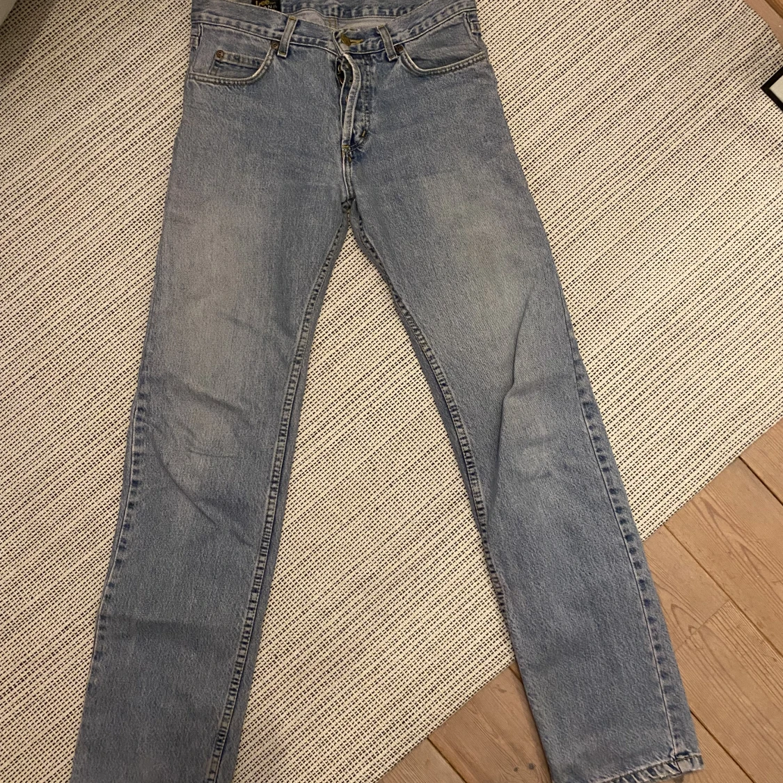 Så så fina Lee jeans i rak modell, inga hål eller fläckar, men köpta i secondhandbutik och där var de omsydda en aning😊 jag är ca 170cm och de är bra i längden! Kan skickas eller hämtas i Göteborg, strl står inte i byxorna men ser ut som s