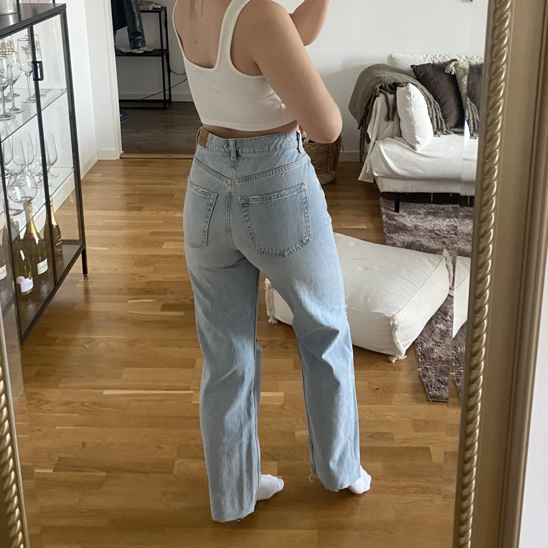 Jeans från ginatricot med hål i knäna. Väldigt fina och bekväma. Aldrig använda. Storlek S. Är 161cm och dom sitter perfekt! 💙💙💙