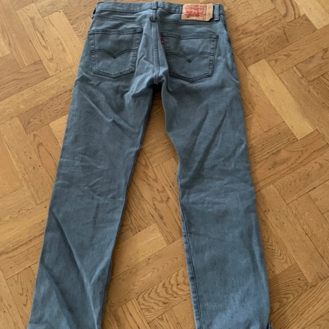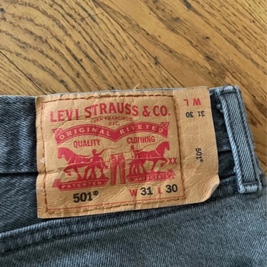 Klassiska Levi's 501 jeans i en snygg grå nyans. Rak passform med normal midja. Tillverkade i slitstarkt jeanstyg, perfekta för en avslappnad och tidlös stil. Ikonisk läderpatch bak i midjan och knappgylf. Bra skick lite använda.