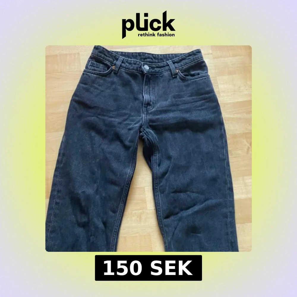 Säljer ett par svarta jeans från Monki med raka ben. Jeansen har normal midja och är inte stretchiga. Väl använda men bra skick! 😊