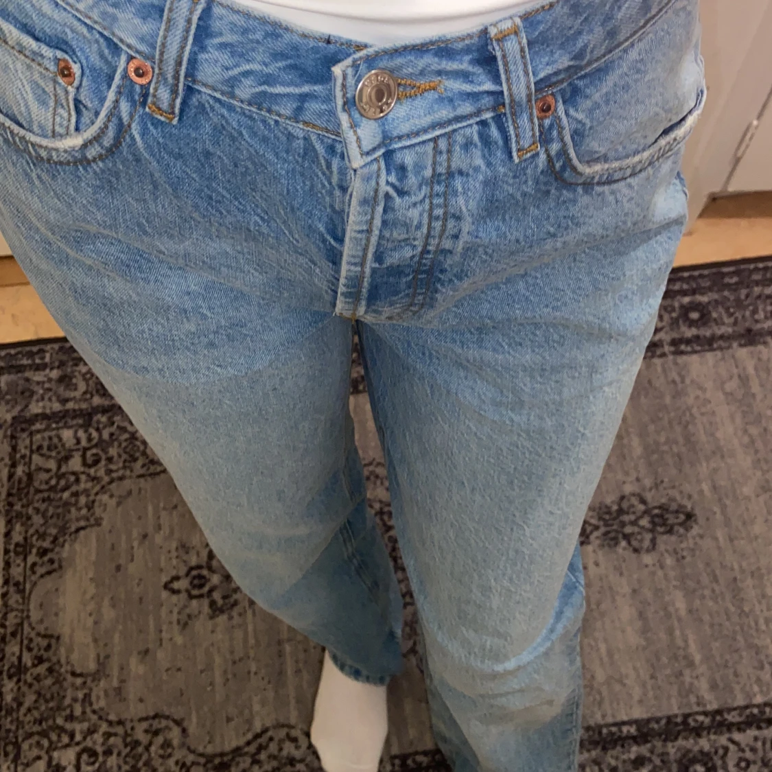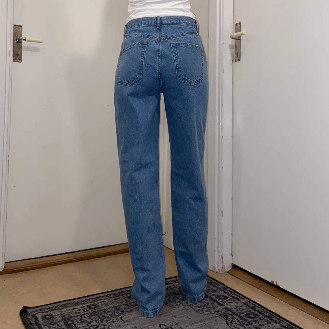 Jättefina mid waist straight leg jeans från asos storlek 28/32, färgen är mid blå. Använt endast 1 gång. Jag är 173cm. Jag är 173 cm