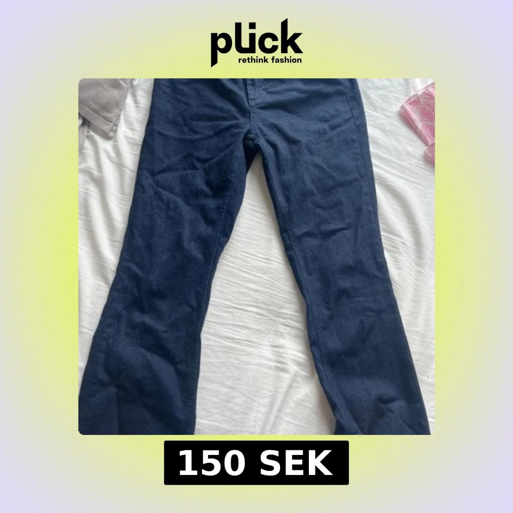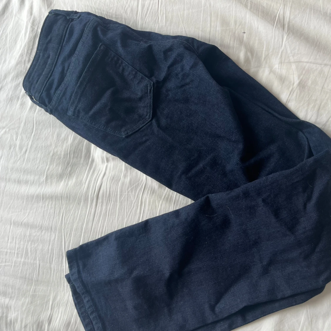 Snygga mörkblå jeans från Zara i klassisk rak modell i storlek 36/S. Jeansen har normal passform och är mid waist, kommer inte till användning då jag inte tycker midwaist jeans passar mig.