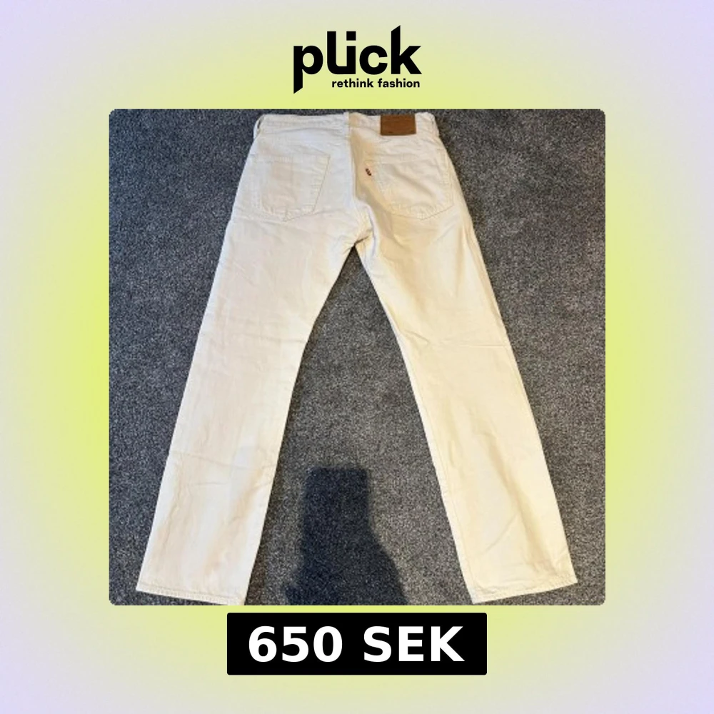 Snygga beige jeansbyxor från Levis med klassisk femficksdesign. Byxorna har en rak passform då det är 501or. De är tillverkade i ett slitstarkt material och har en knappgylf. Dem är använda ett 2 gånger sen jag köpte dem. Storlek är W31 L30. Köpta för 1100kr från Levis i Helsingborg. Pris kan diskuteras vid snabbbb affär