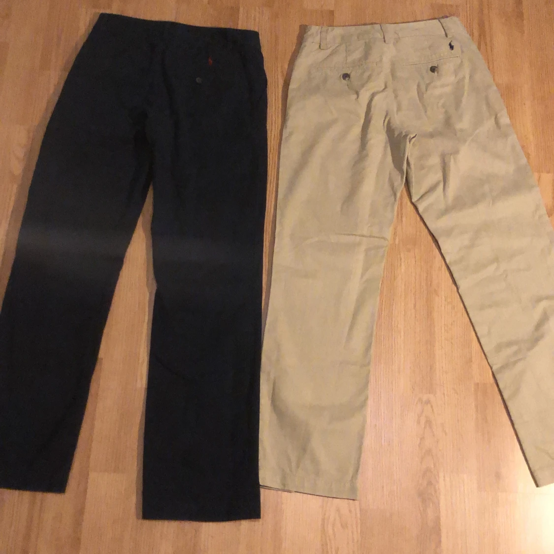 Säljer två par klassiska chinos från Polo Ralph Lauren. Ett par är mörkblå och det andra är beige, båda med raka ben och diskret broderad logga bak. Perfekta för en stilren och avslappnad look. Mörkblåa är på bilden storlek 10 men finns även i storlek 12 som de beiga . Priset är hugget i sten . Nypris = ca 900 per byxa ( totalt 1800) . Går även att köpa endast ett par. Knappt andvända ( nytt skick )