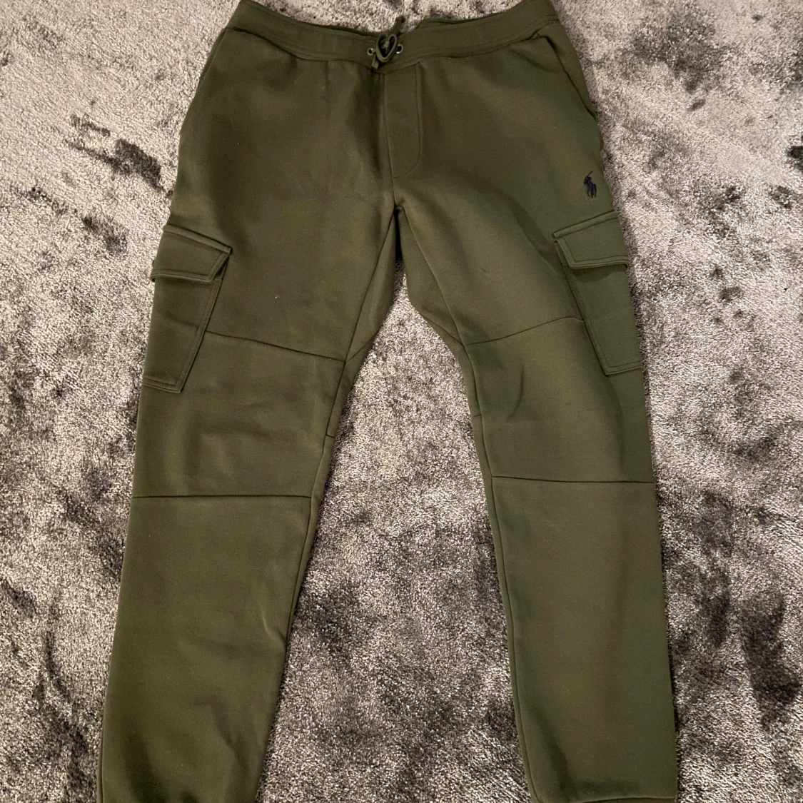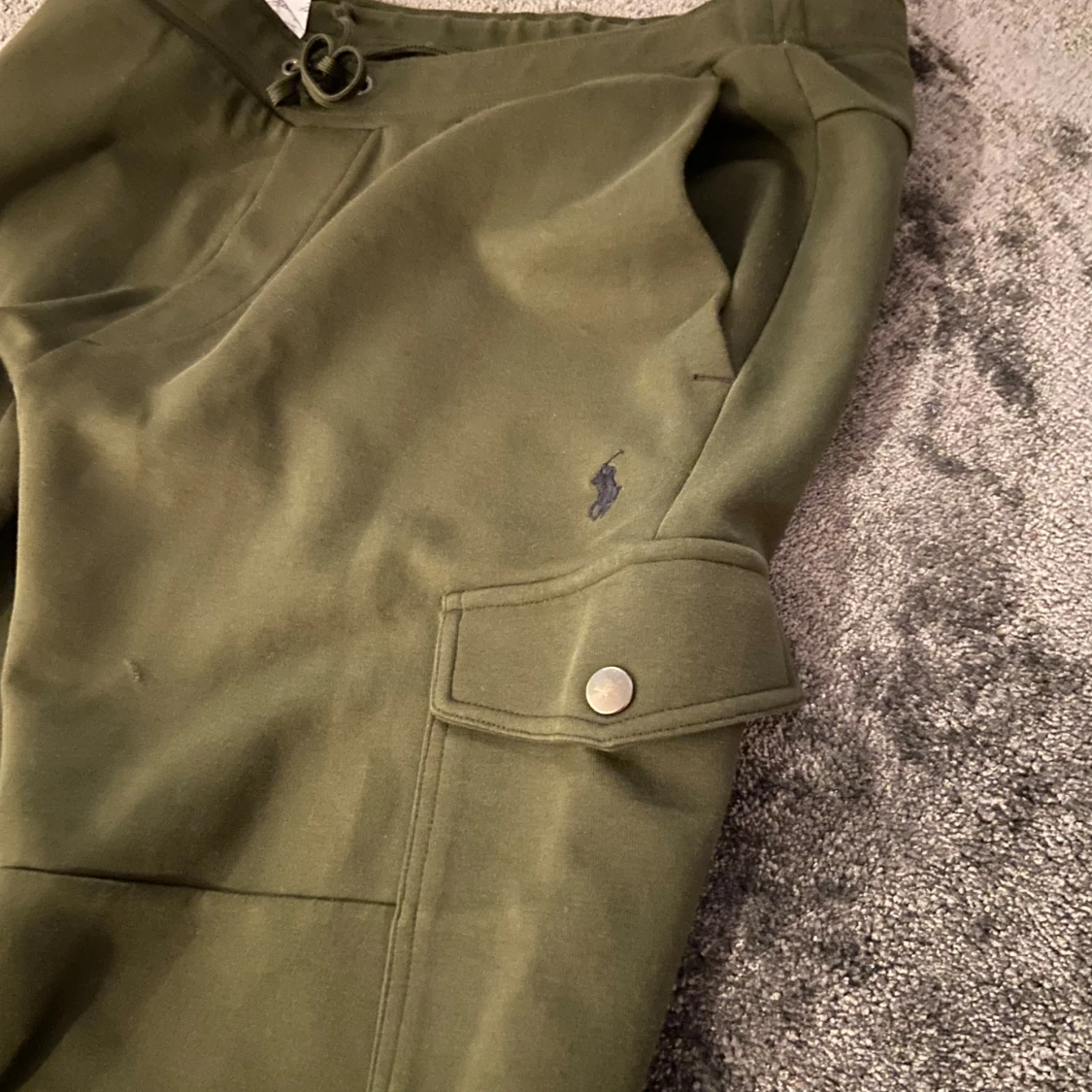 Snygga olivgröna cargopants från Polo Ralph Lauren med dragsko i midjan och stora fickor på sidorna. Byxorna har en avslappnad passform och är tillverkade i mjukt bomullsmaterial. Perfekta för en chill och trendig look.
