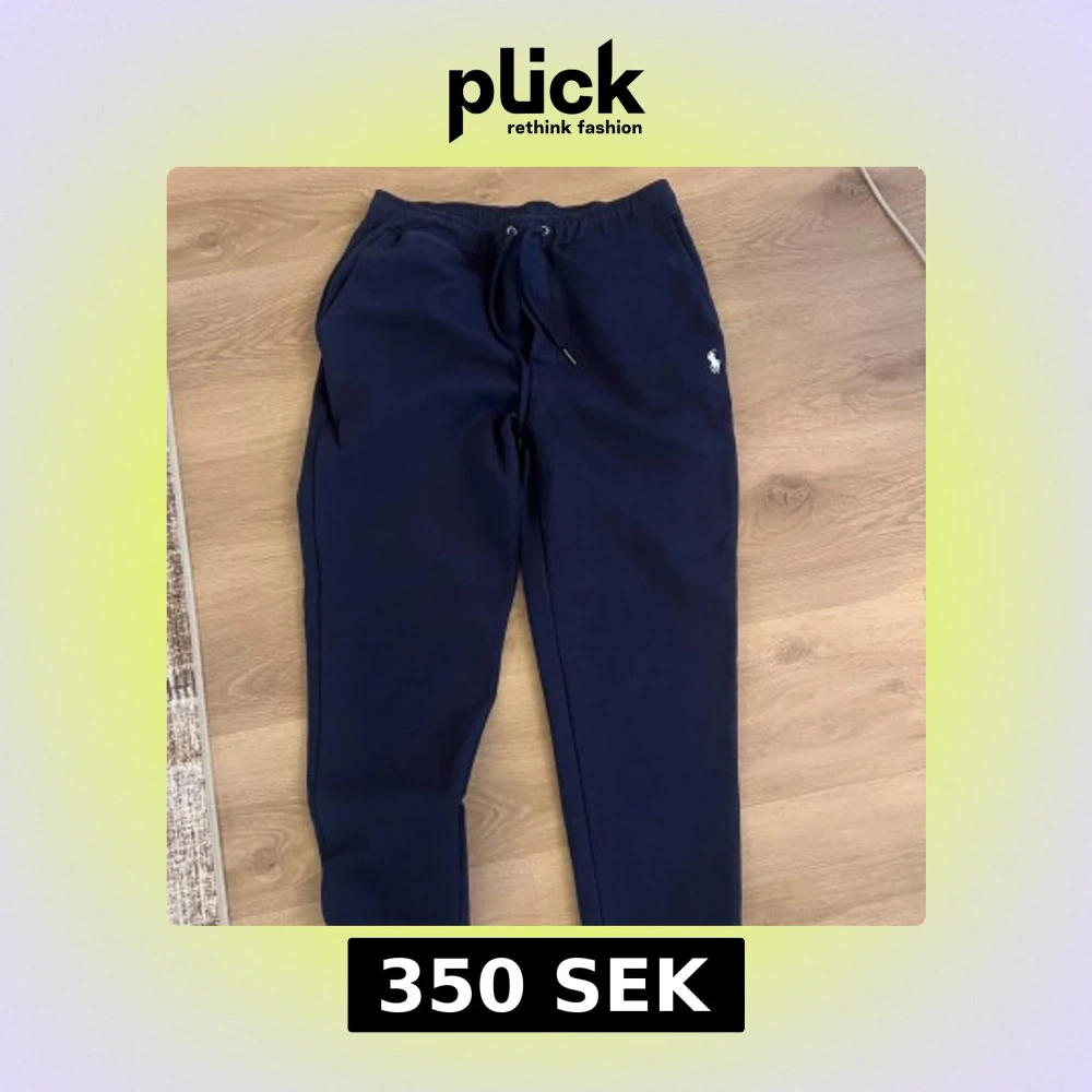 Mörkblå mjukisbyxor från Polo Ralph Lauren med dragsko i midjan och broderad logga på ena benet. Byxorna har en avslappnad passform och är perfekta för en chill stil.