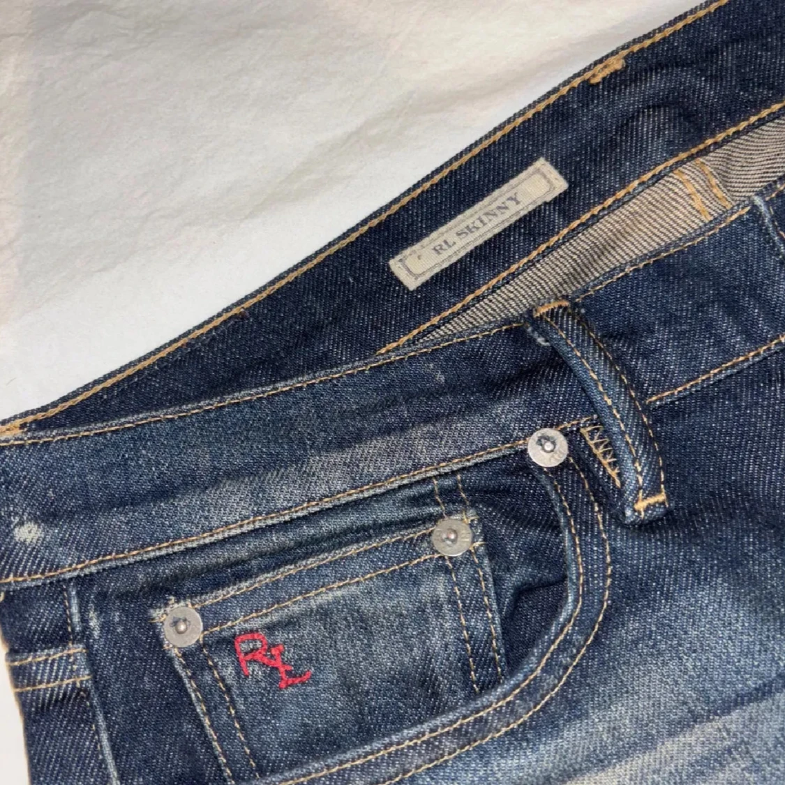 Snygga blå jeans från Ralph Lauren med en klassisk femficksdesign och subtila slitningar. De har en knappgylf och märkesdetaljer på fickan. Perfekta för en stilren look.