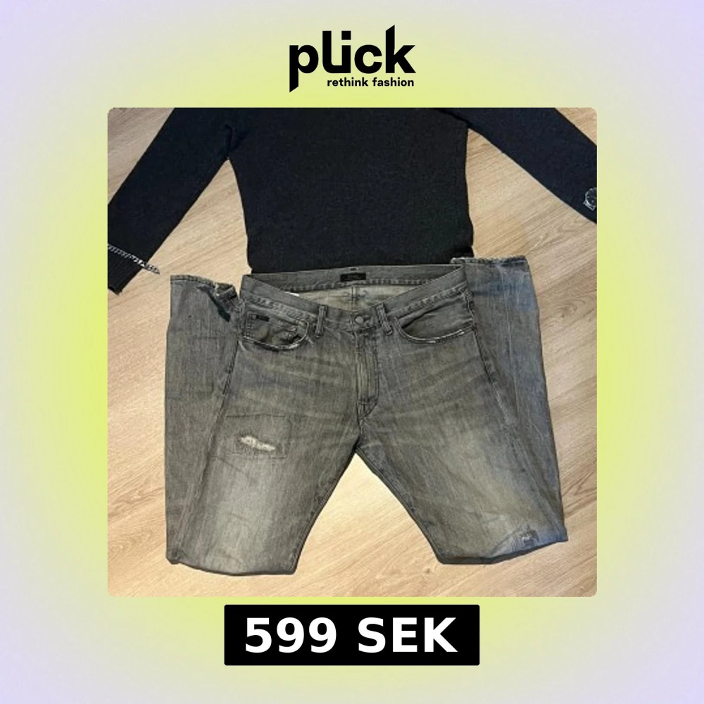 Gråa ralph lauren jeans köpta för typ 1 år sedan. Finns inte i butik längre. Unika med slitningar (från butik). De är tapered och är 34 i längd o 32 i midja. Jag är 184. Har aldrig sett någon med dessa jeans så helt klart unika o coola.