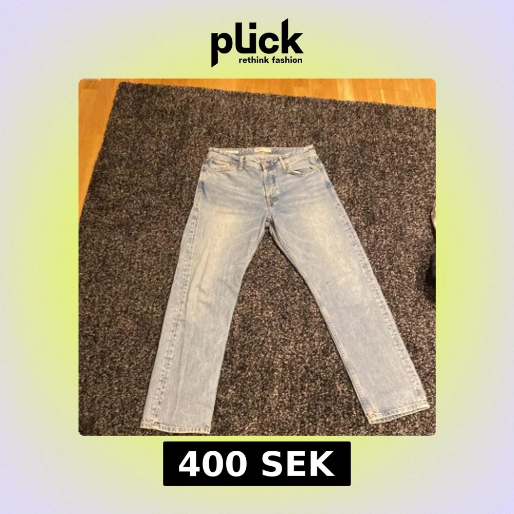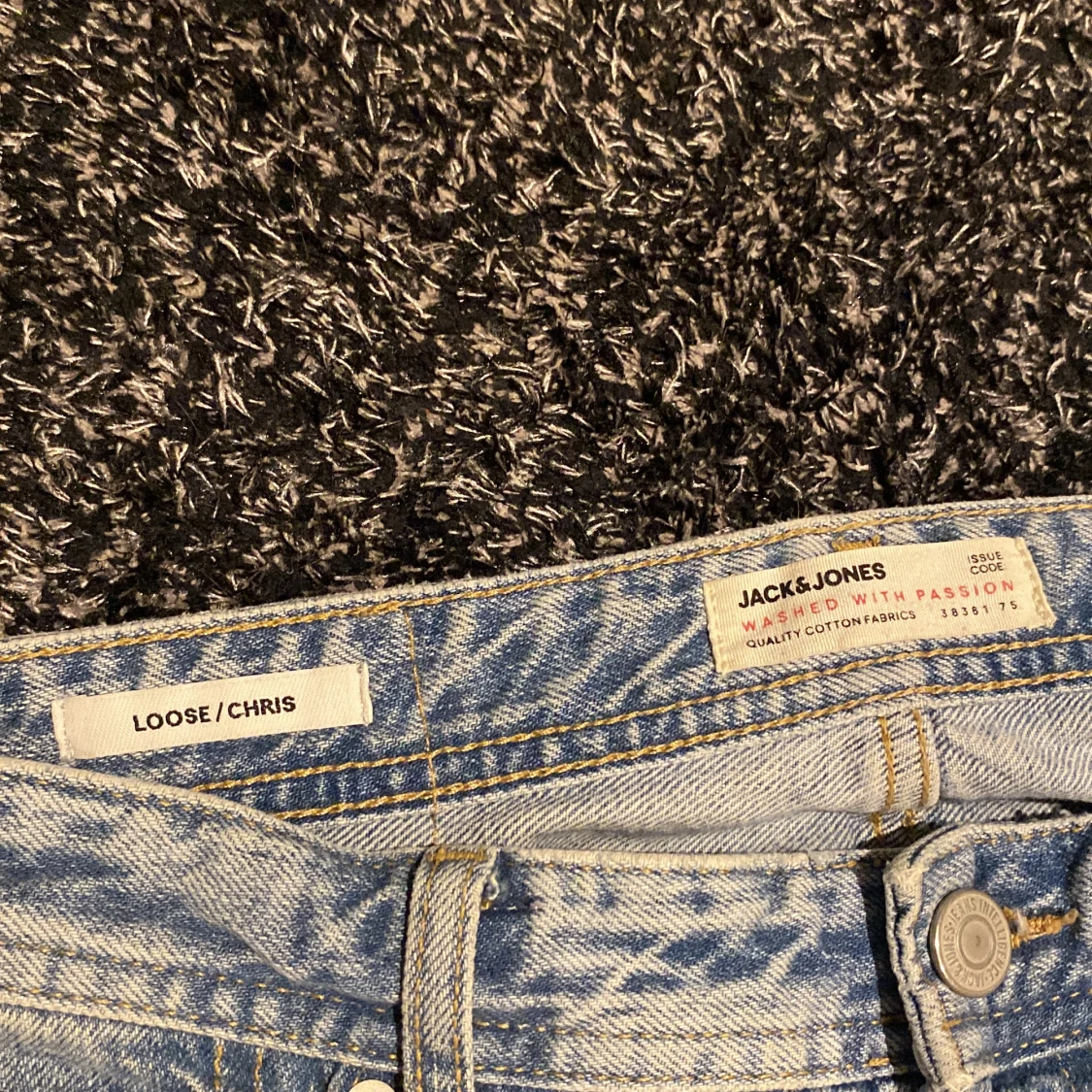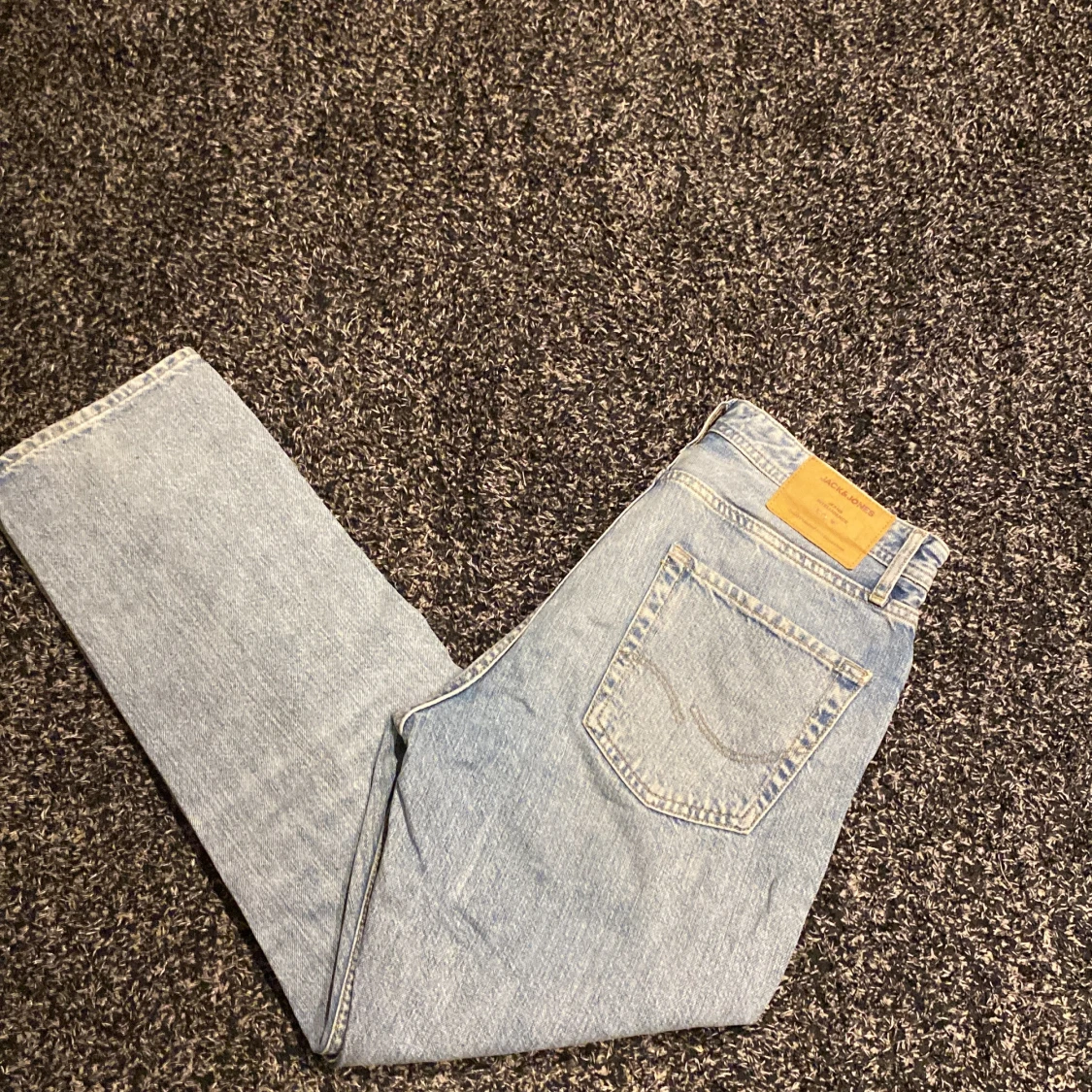 Säljer ett par ljusblå jeans från Jack & Jones i modellen Loose/Chris. De har en avslappnad passform och klassisk femficksdesign. Perfekta för en casual look!